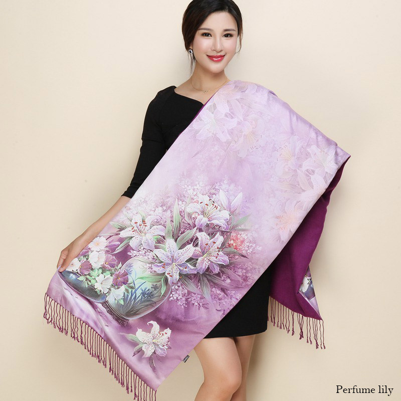 Satin Double-layer Shawl Cheongsam With Mum's Elder Scarf