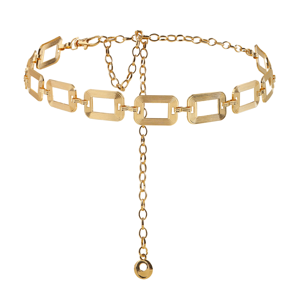 Sexy Women's Waist Chain Metal Cutout Simple Texture Square Buckle Body Chain -