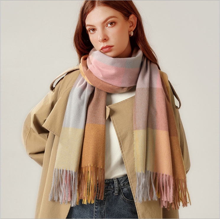Shawl Scarf Winter Warmth Cashmere Tassel Plaid Long Bib