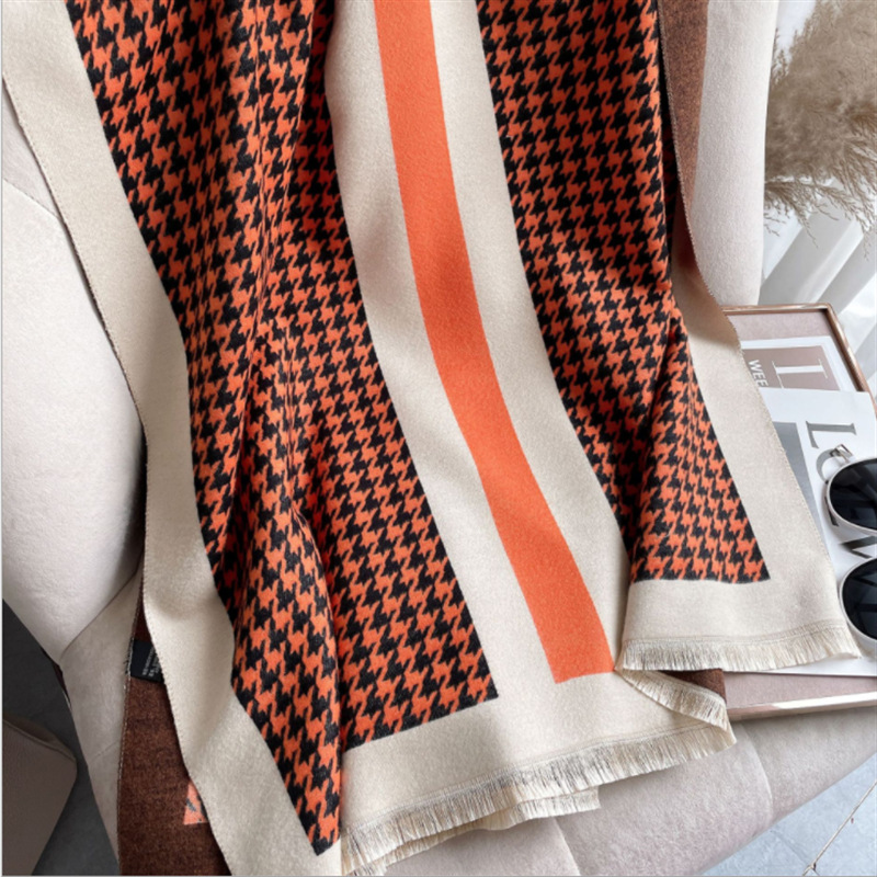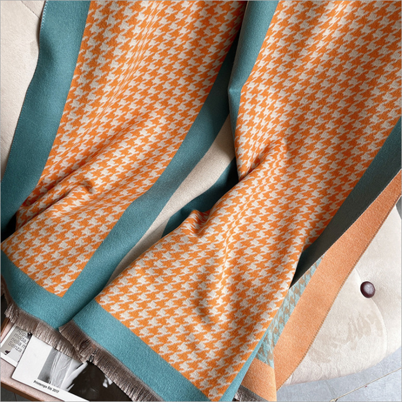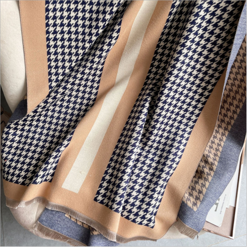 Short Beard Fringe Decoration Women's Cashmere Houndstooth Scarf
