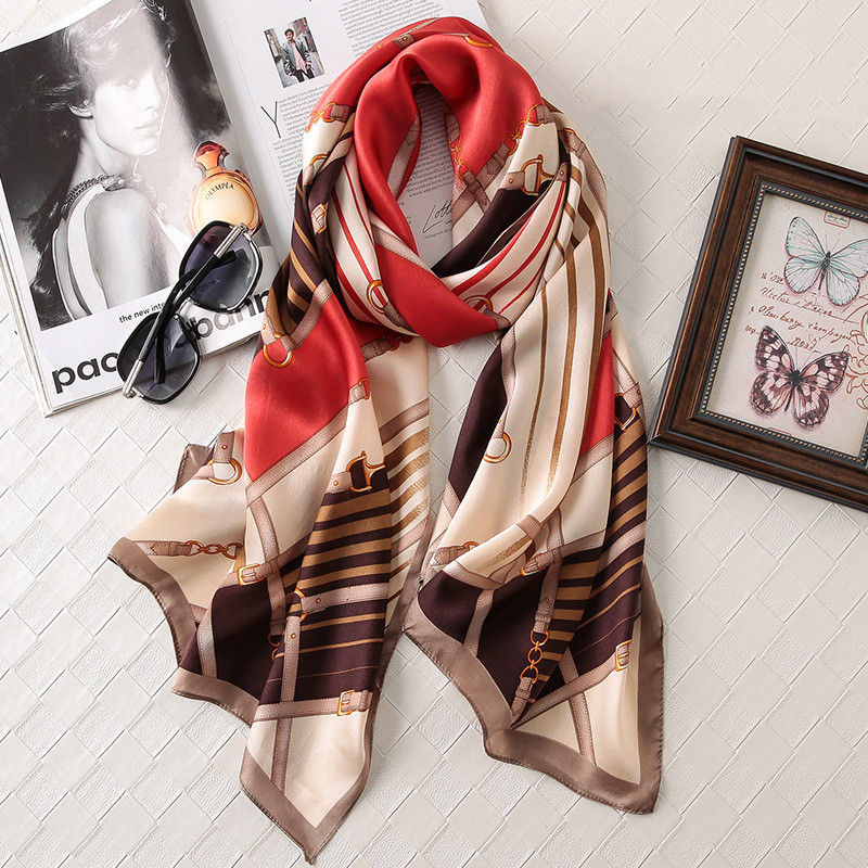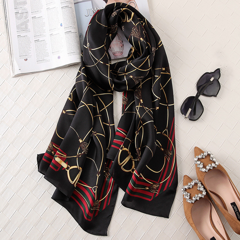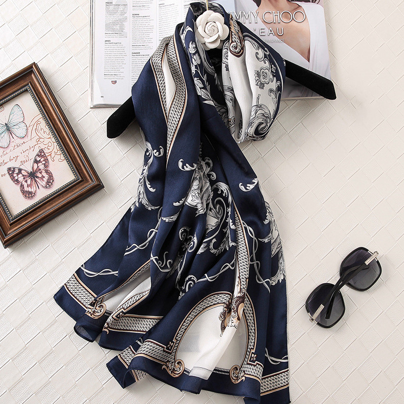 Silk Printed Scarf Medium Length Satin Sunshade Shawl