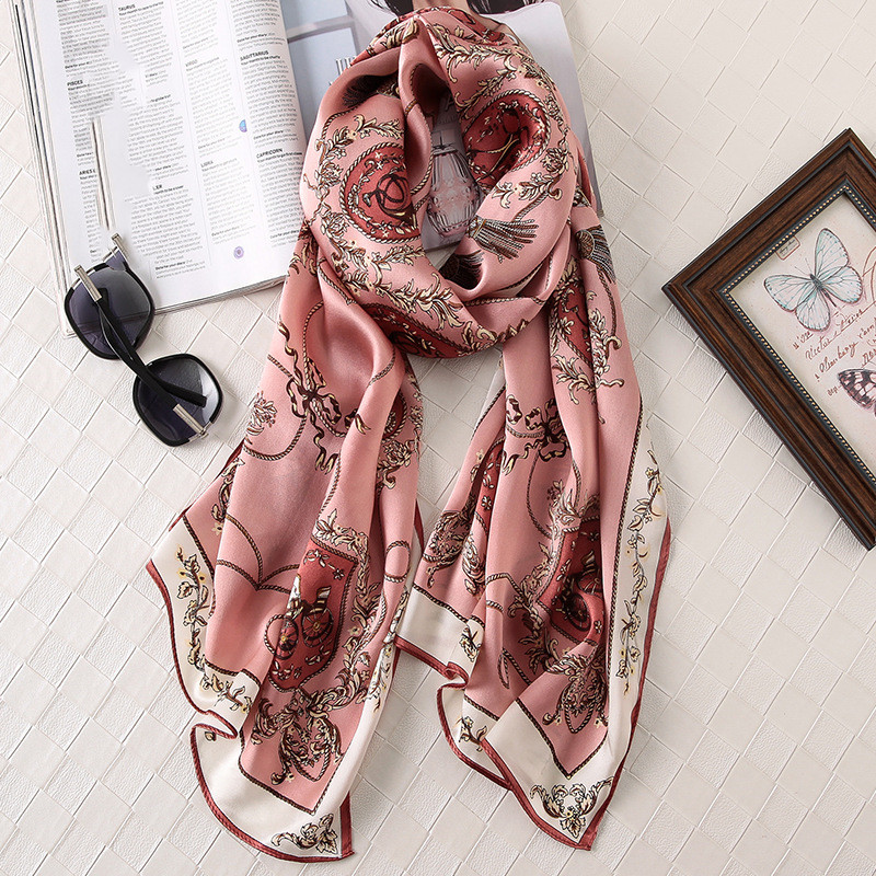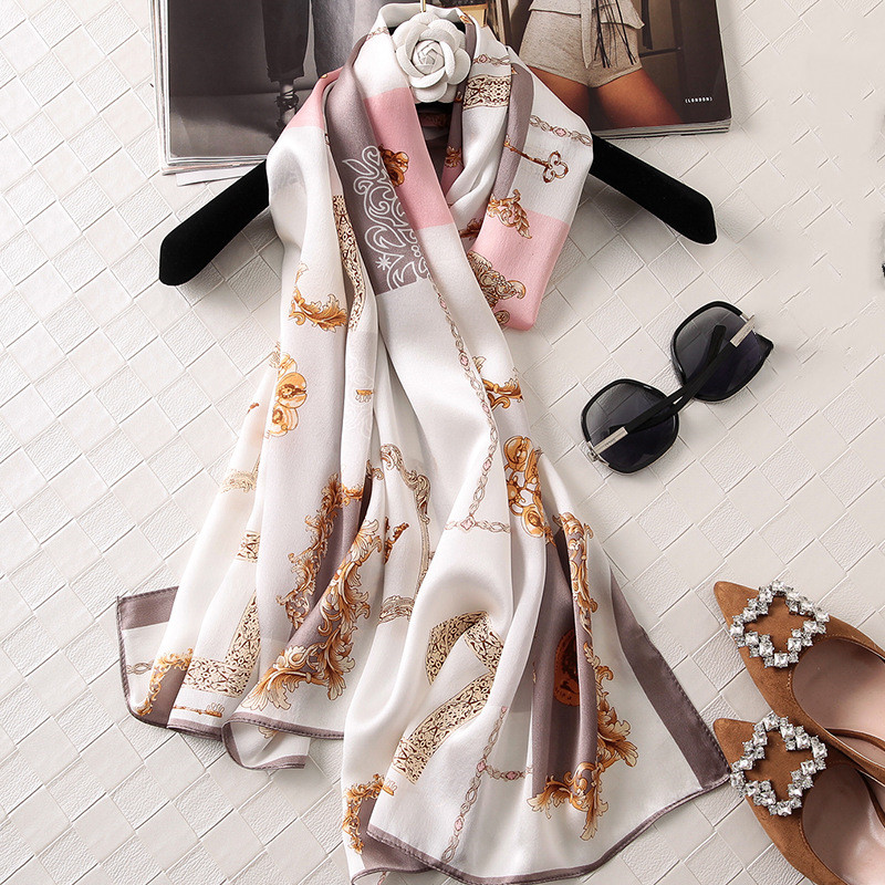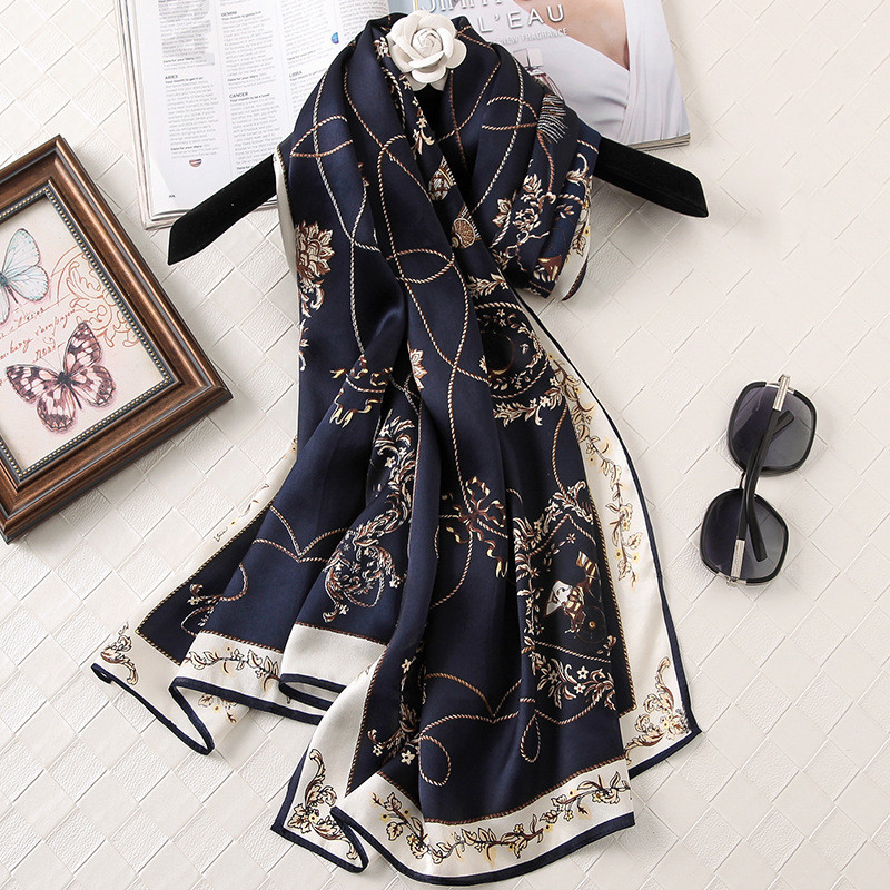 Silk Printed Scarf Medium Length Satin Sunshade Shawl -