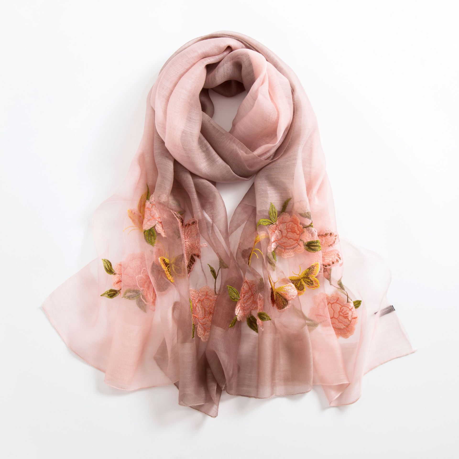 Silk scarf with wild embroidery in spring