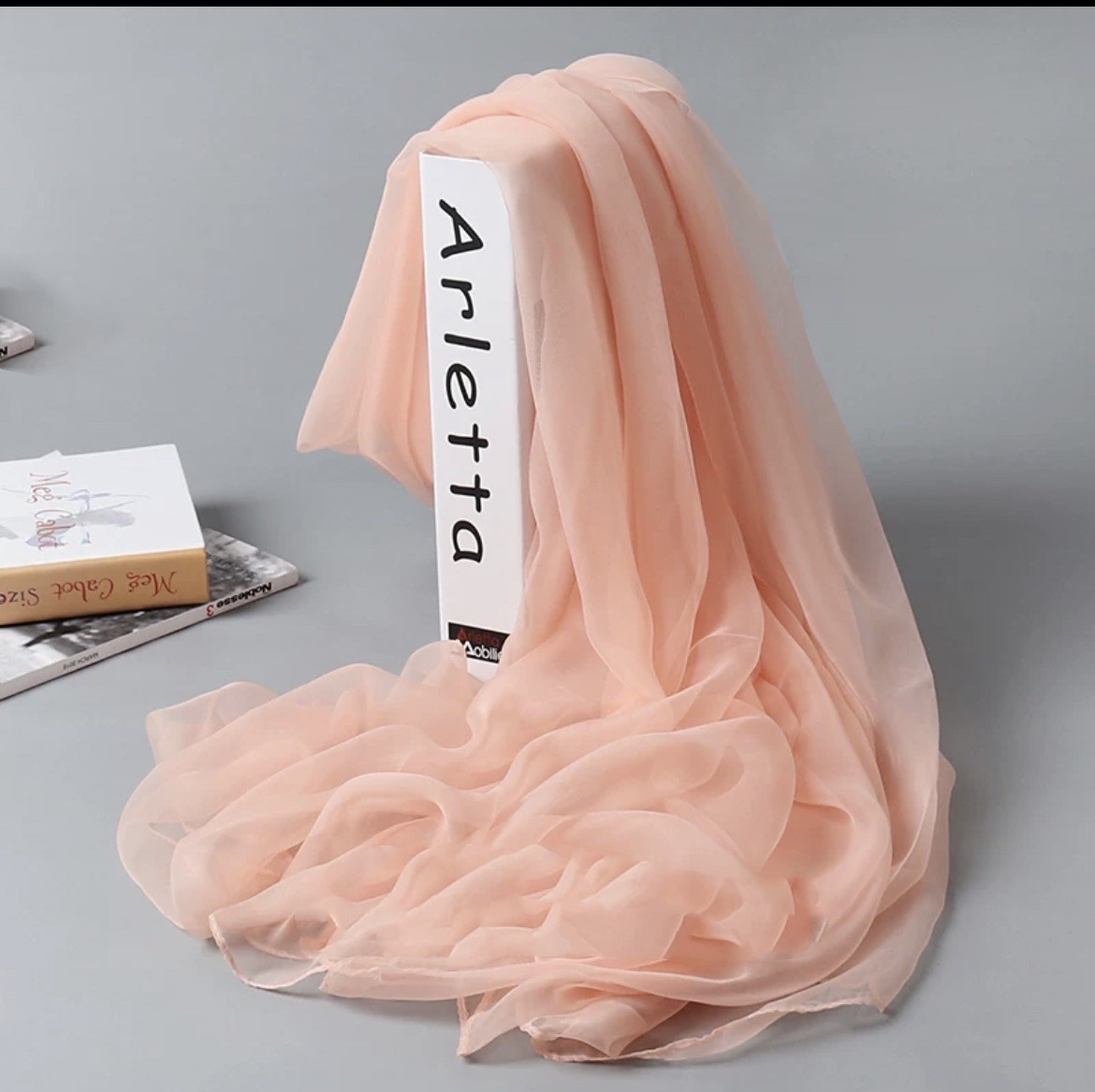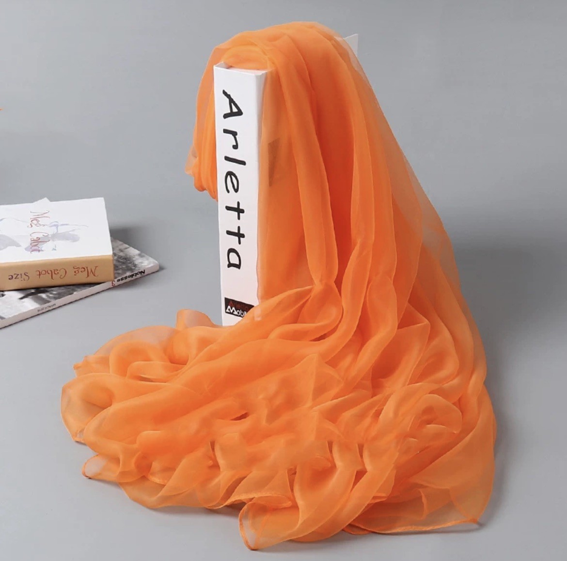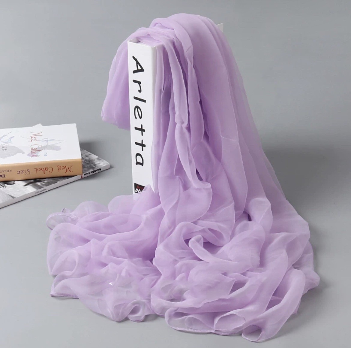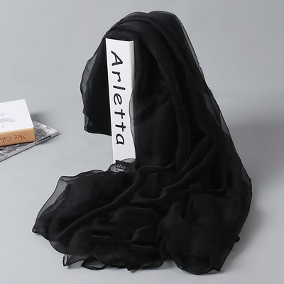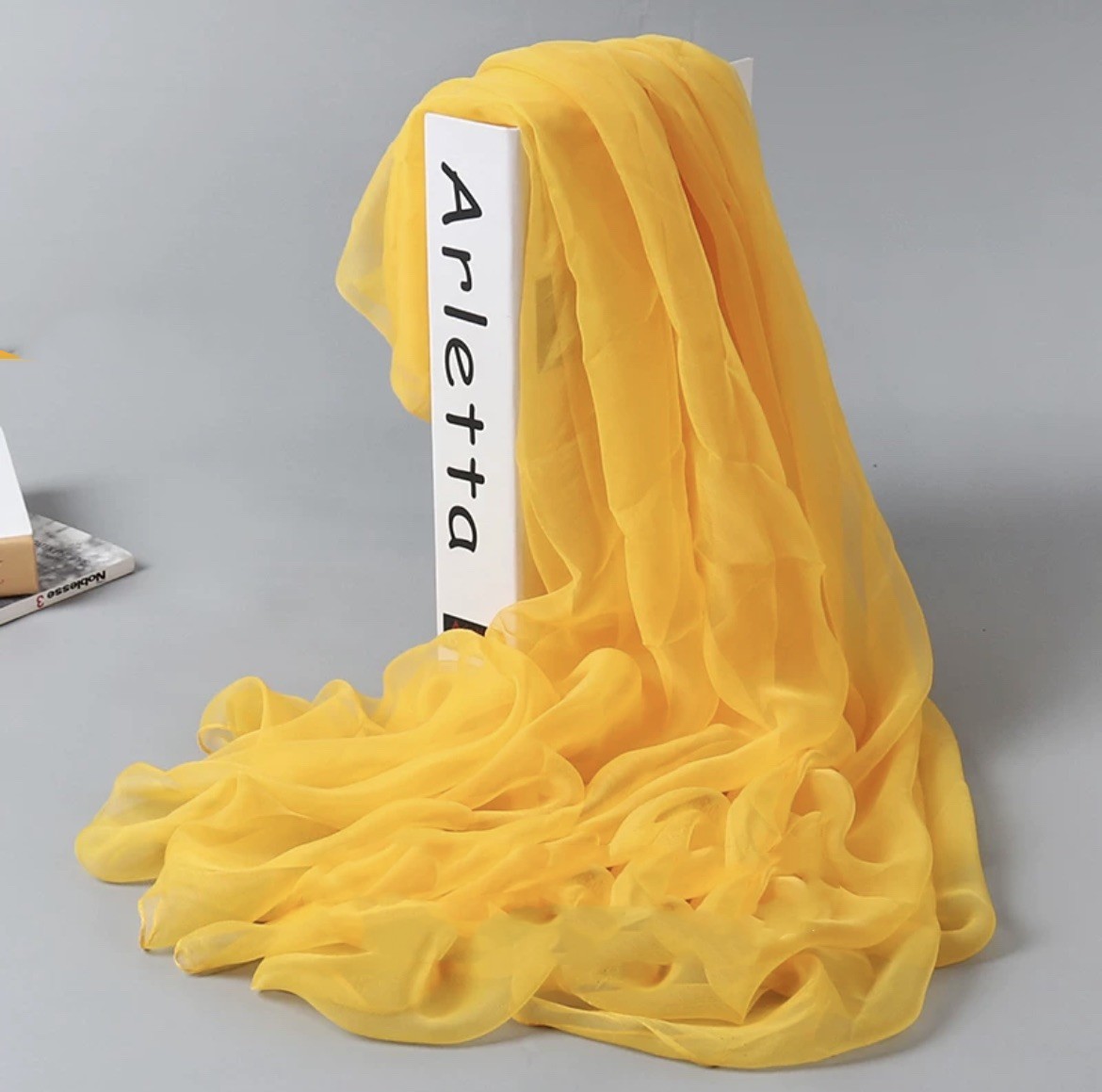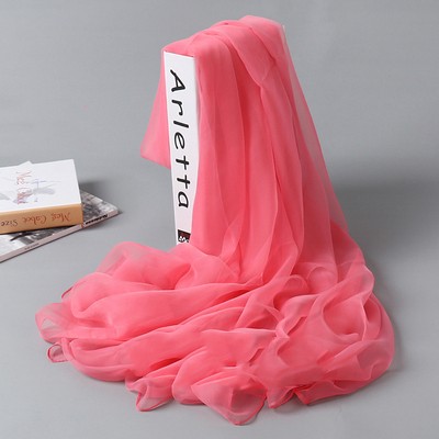 Silk Scarf Women's Long Solid Color Beach Shawl Large Chiffon