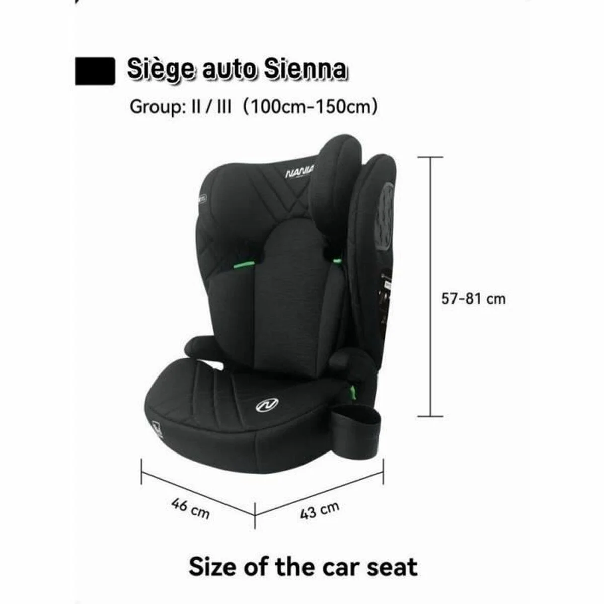 La silla para el coche SIENNA de Nania está diseñada para ofrecer una solución segura y práctica para el transporte de niños pertenecientes al Grupo 2/3, lo que corresponde a menores con un peso aproximado entre 15 y 36 kg, adaptándose idealmente a la talla I. Esta silla de coche destaca por su estructura robusta y su sistema de sujección mediante cinturón de seguridad del vehículo, garantizando una correcta retención y protección en cada viaje. Su diseño en color negro ofrece un aspecto sobrio y versátil que combina con la mayoría de los interiores automovilísticos, favoreciendo su integración sin comprometer la comodidad. Fabricada con materiales resistentes, la SIENNA permite un montaje sencillo y seguro, cumpliendo con las normativas vigentes para asientos infantiles, lo que aporta tranquilidad a los cuidadores durante el desplazamiento. Este modelo es apropiado para niños que ya dominan el sistema de retención con cinturón, facilitando la transición desde sillas con arnés propios a un sistema más convencional pero adaptado a su seguridad. En definitiva, la silla de coche SIENNA de Nania es una opción eficaz y funcional para el transporte infantil en etapas intermedias, combinando protección, compatibilidad y diseño neutro para uso diario.
