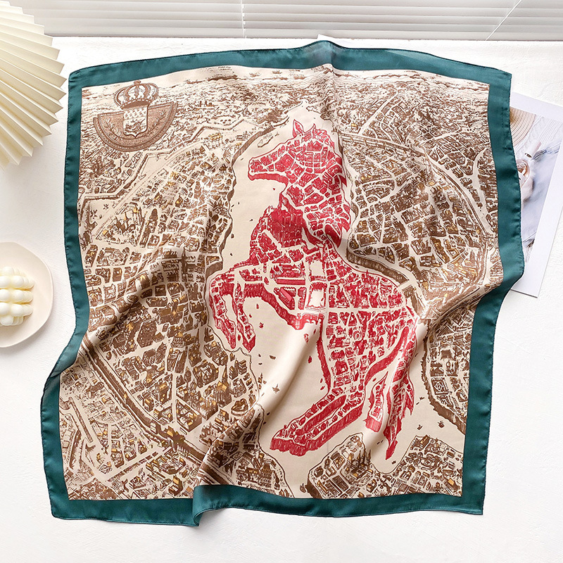 Simple Wild Fashion Color Matching Color Simulation Silk Square Scarf