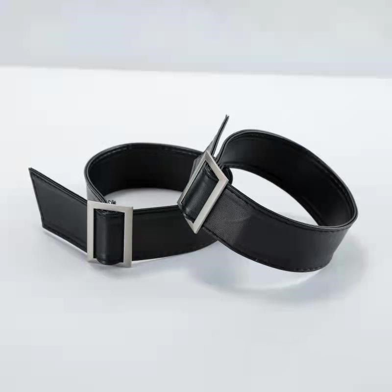 Soft Leather Trench Coat Cuffs With Hand Wrist Strap -