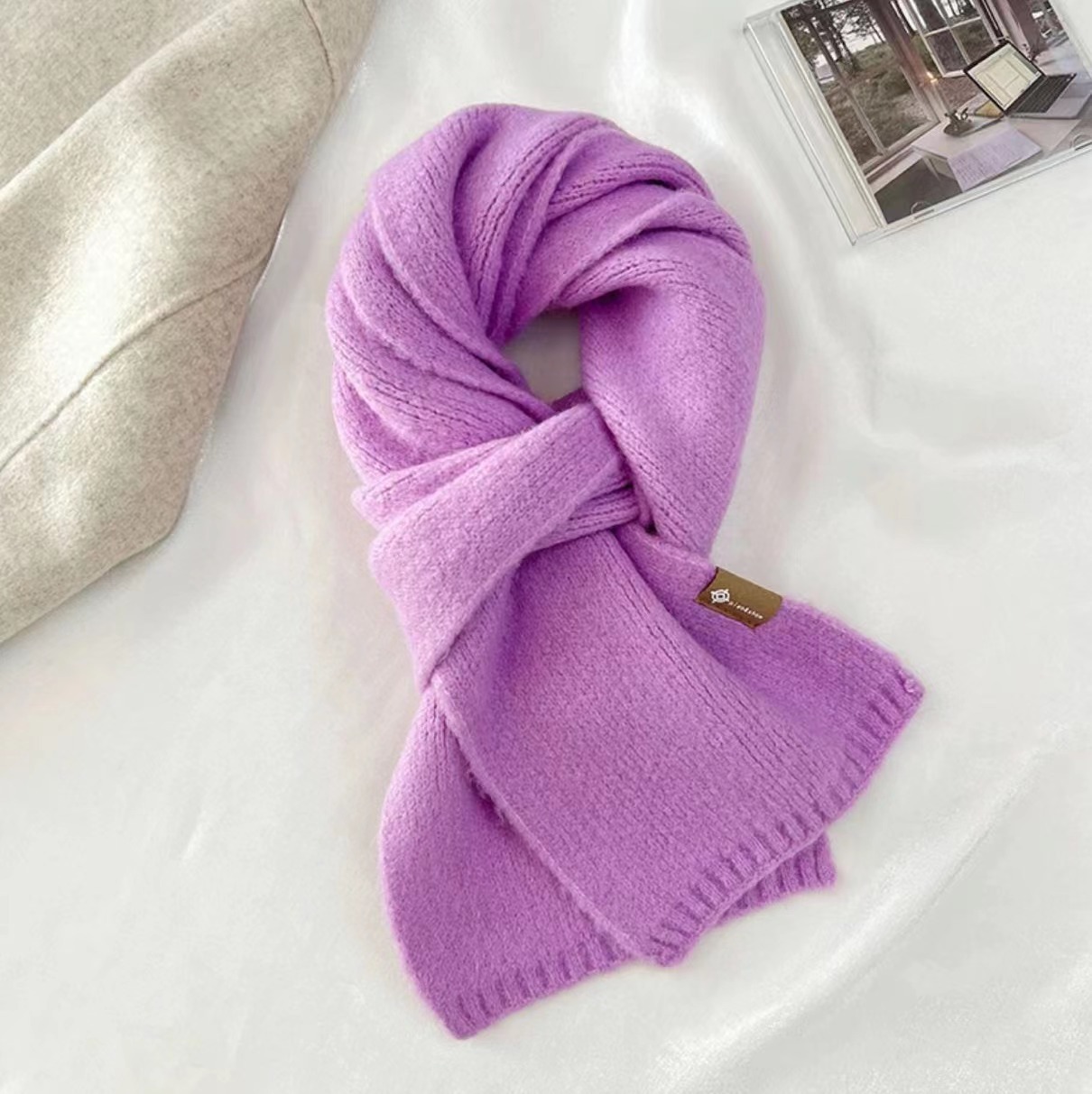 Soft Sticky Warm Fashion Basic Outer Wear Solid Color Scarf For Women