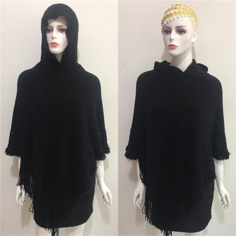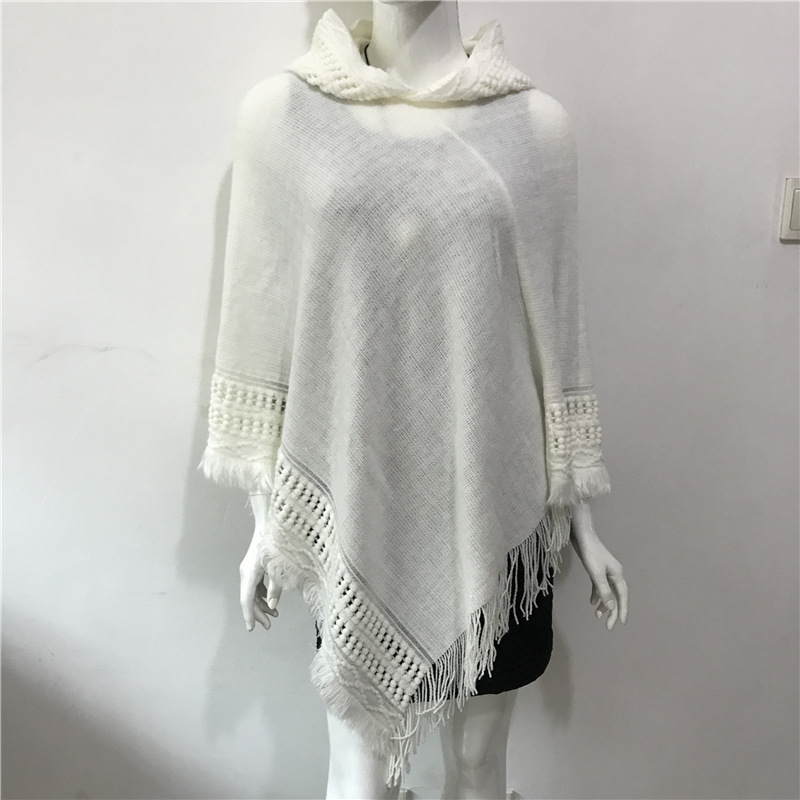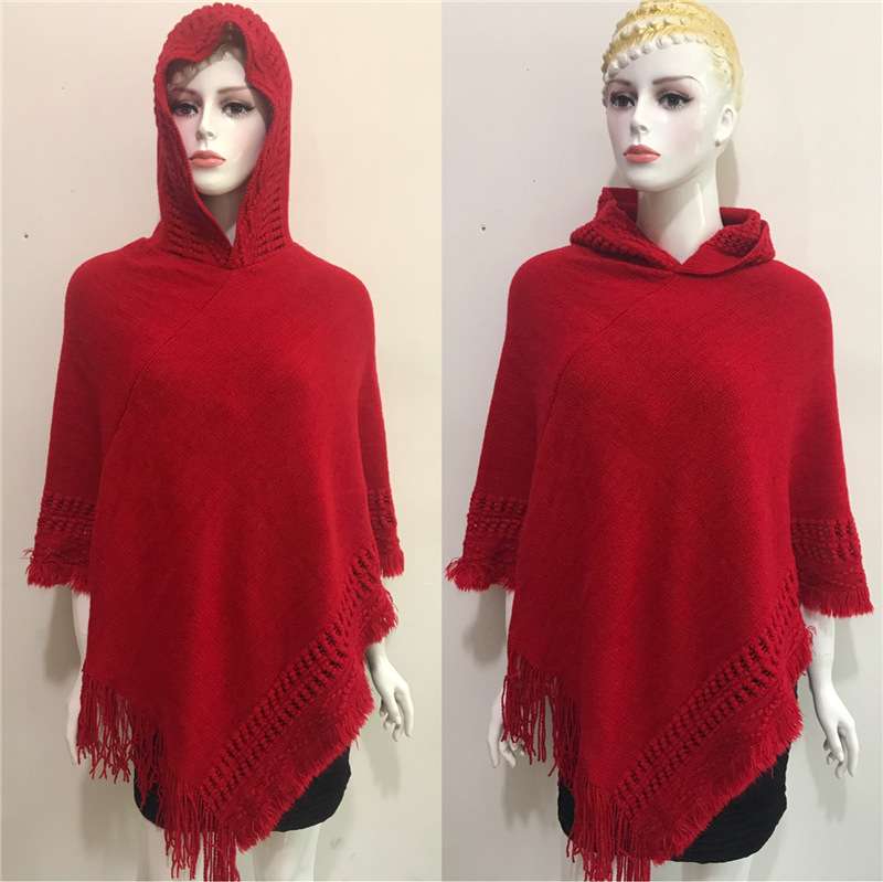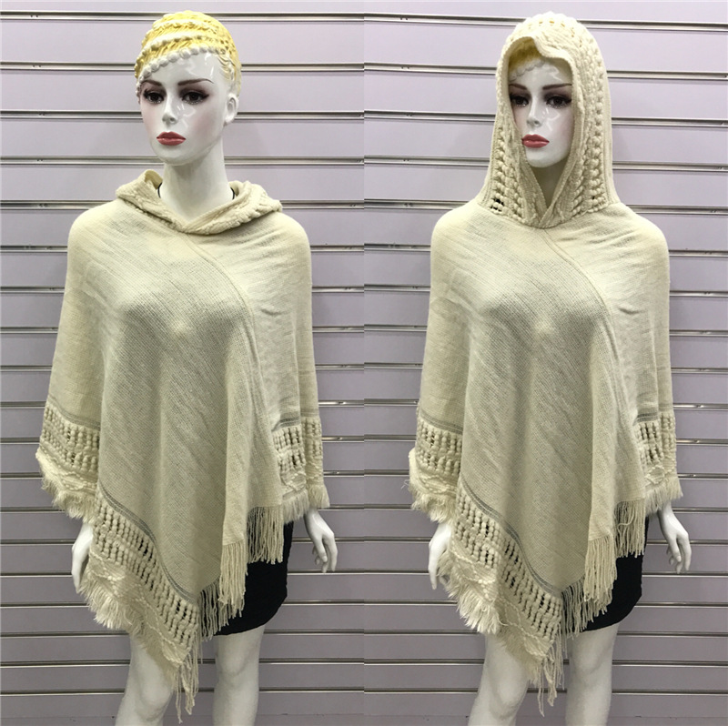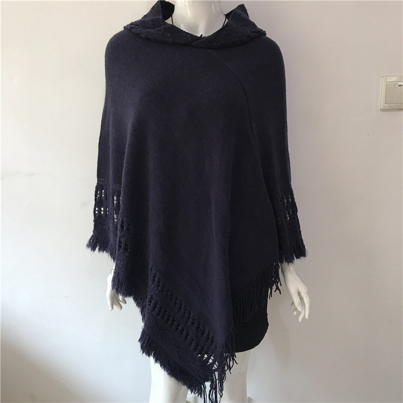 Solid Color Hollow Tassel Plus Size Cape And Shawl