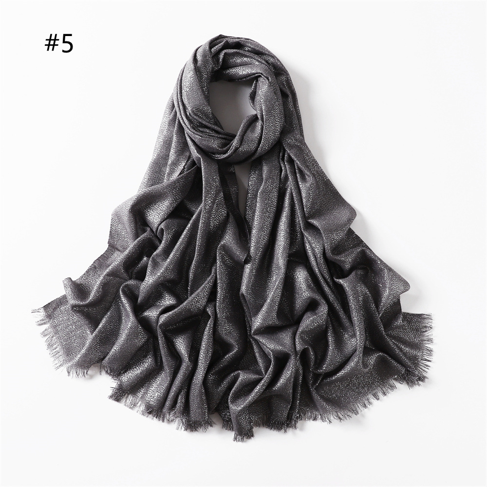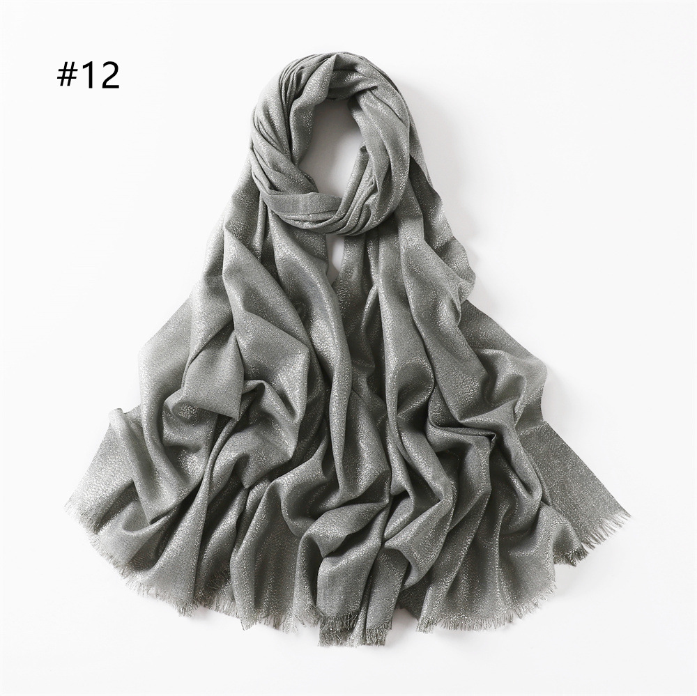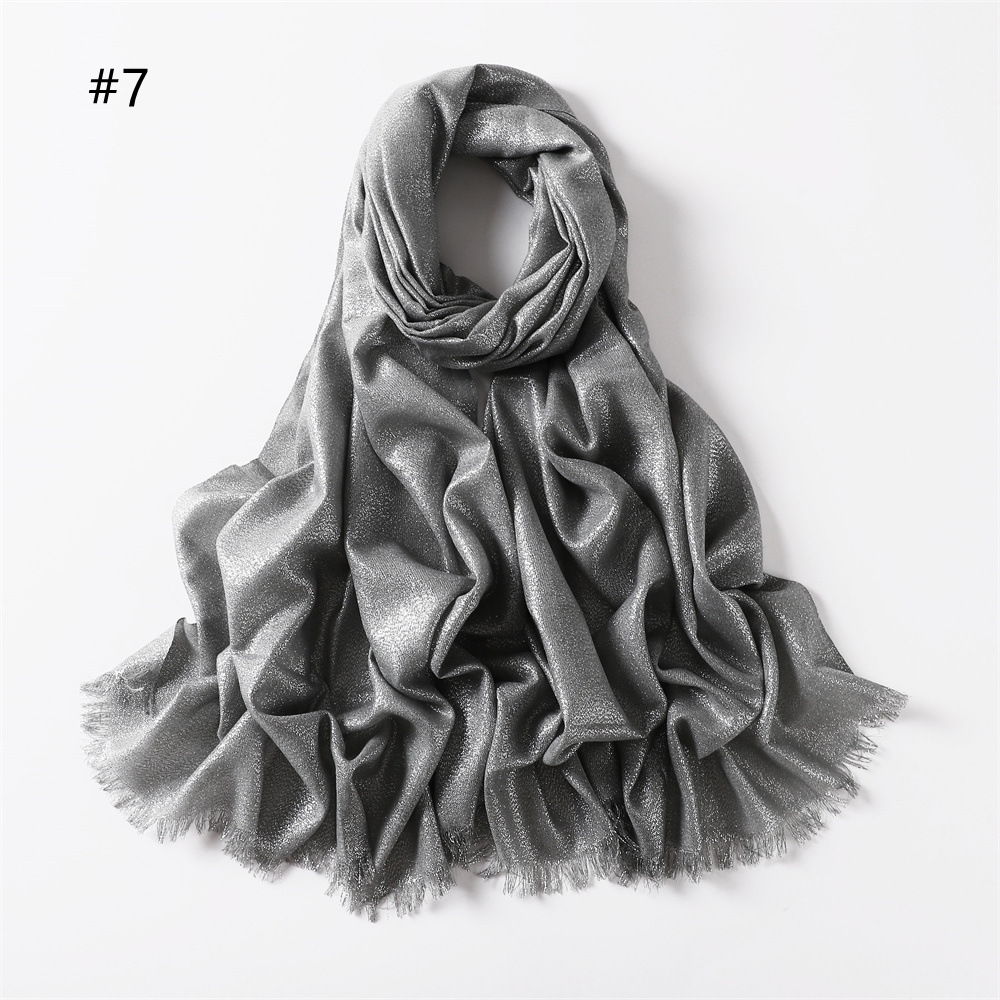 Solid Color Rayon Golden And Silver Color Cord Two Ends Short Beard Closed Toe Shawl Women's Scarf