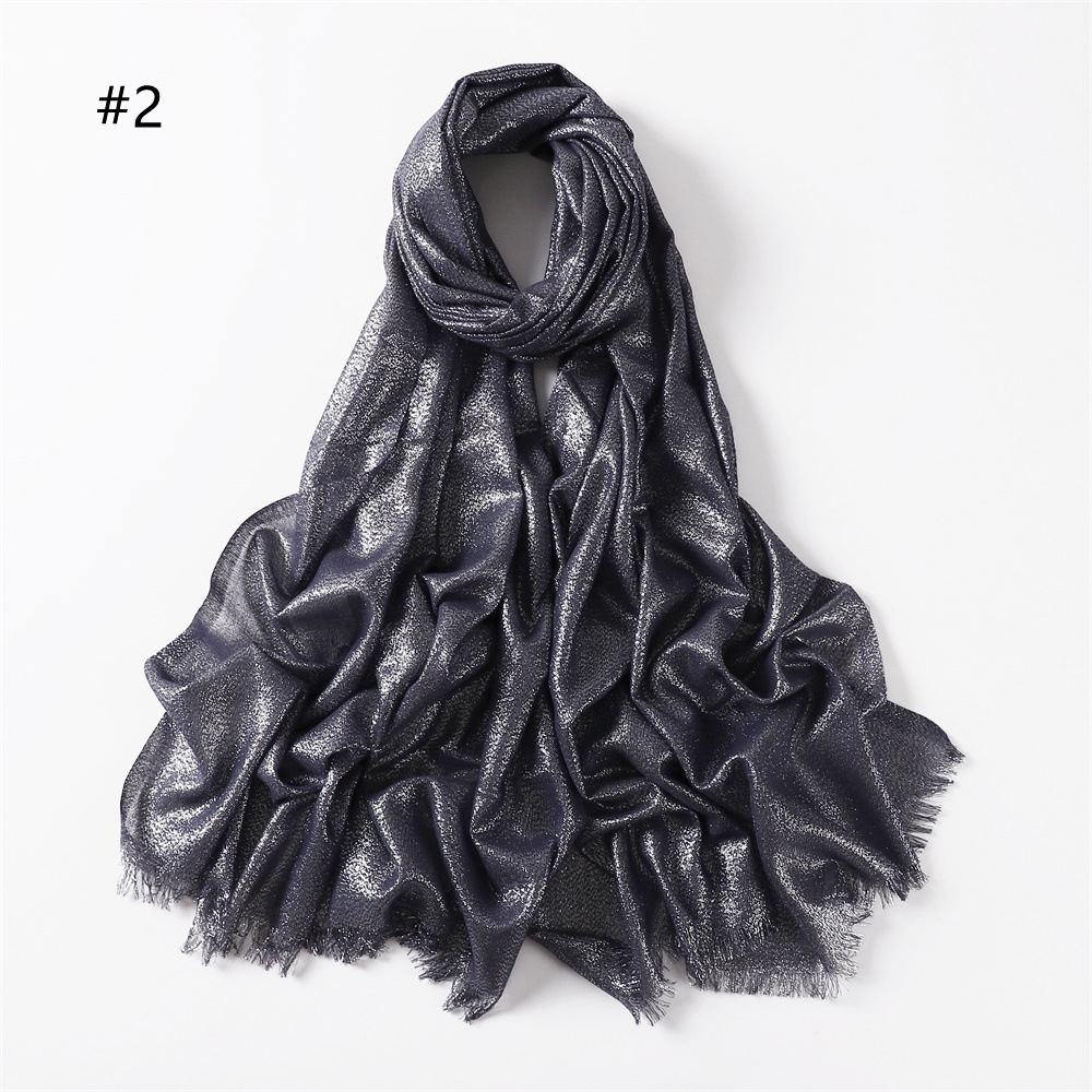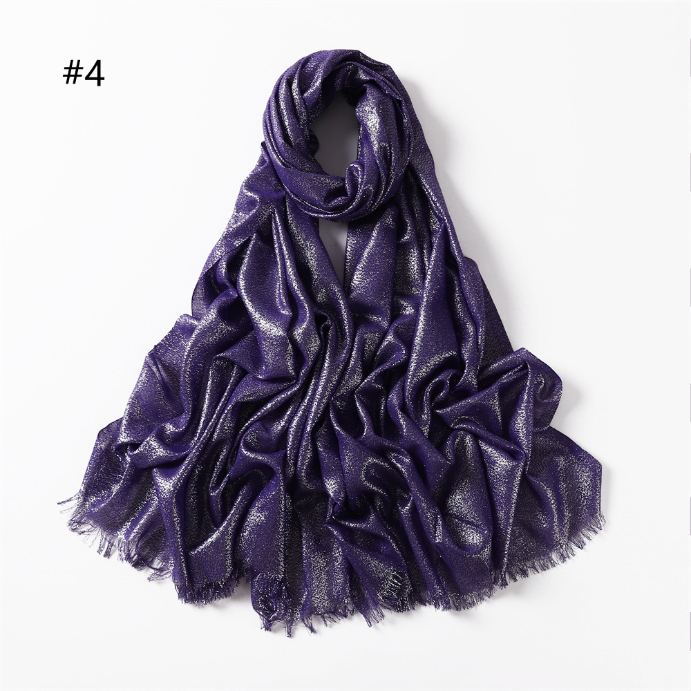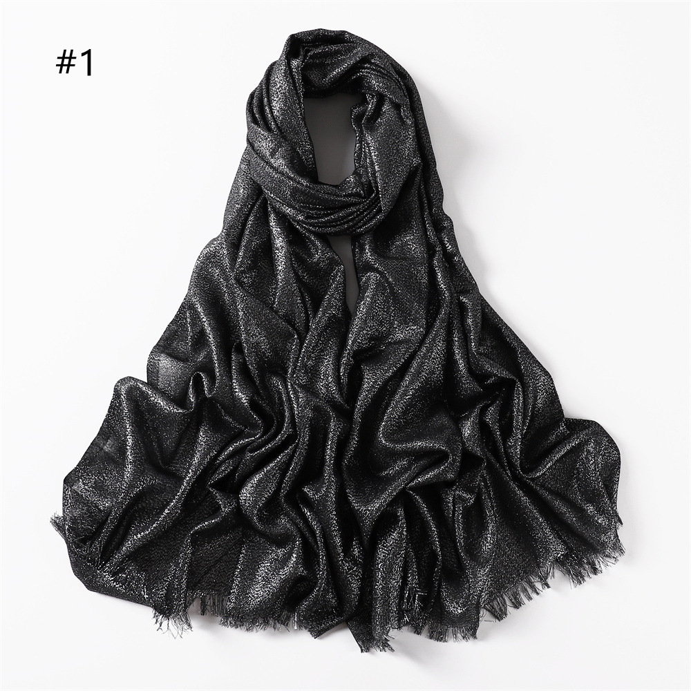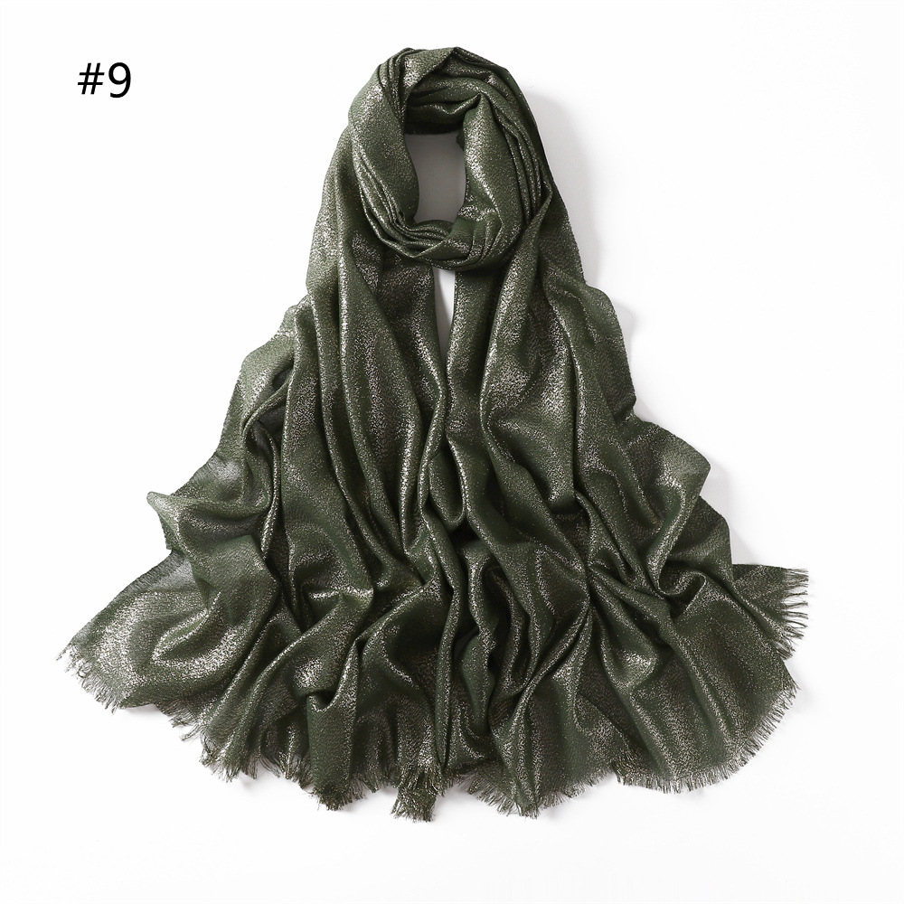 Solid Color Rayon Golden And Silver Color Cord Two Ends Short Beard Closed Toe Shawl Women's Scarf