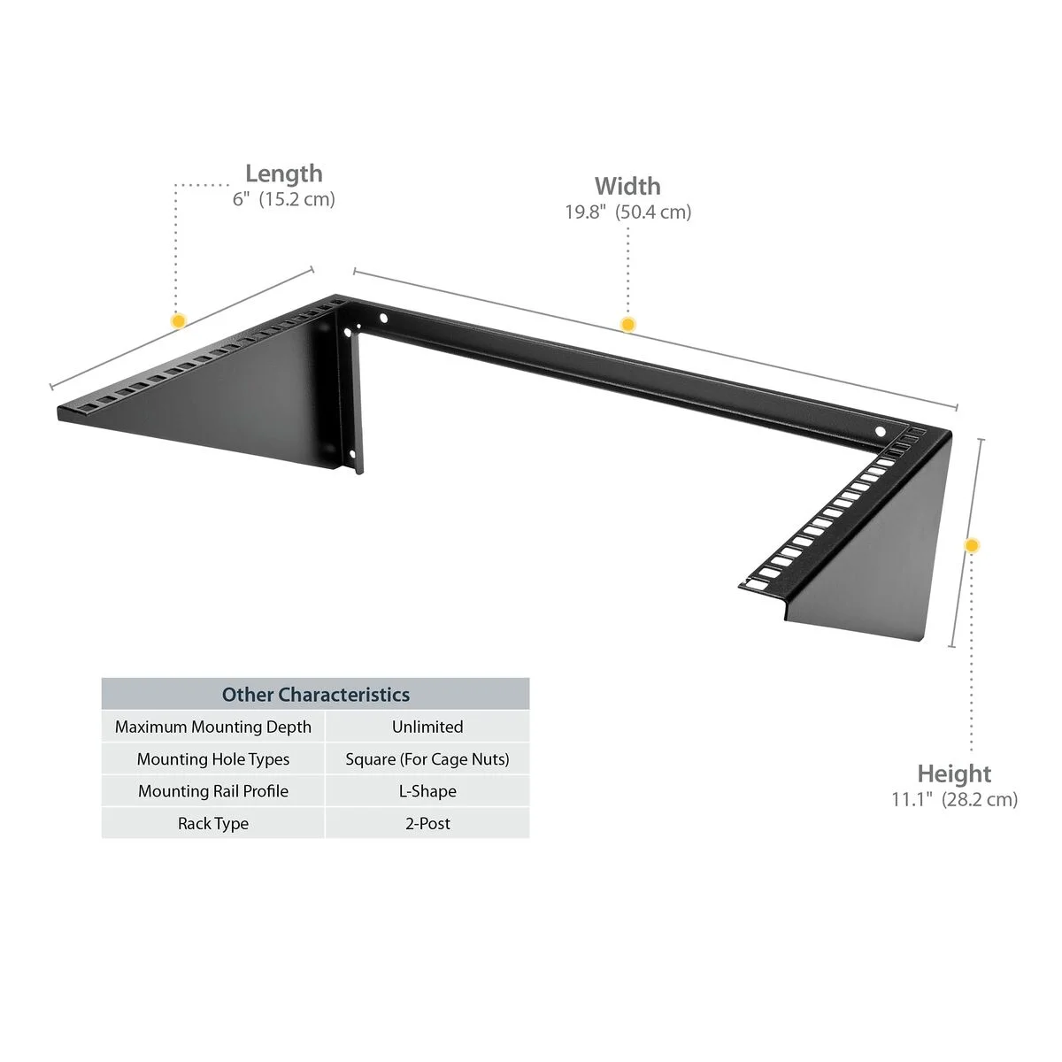 Este soporte para montaje en pared ofrece 6U de espacio de almacenamiento vertical, para el montaje de sus equipos en la pared. Este rack 6U para montaje en pared es compatible con EIA-310-D, a fin de garantizar la compatibilidad con cualquier equipo de montaje en rack de 19 pulgadas, como sus regletas de alimentación, y sus dispositivos de telecomunicaciones, de redes y audiovisuales. Ahorre espacio mediante el montaje de su equipo en la pared u otras superficies El rack 6U aprovecha de forma óptima su espacio de trabajo, ya que permite el montaje de su equipo en la pared, en lugar de ocupar espacio en su escritorio u otras superficies.Solución perfecta en su entorno de trabajo tipo SoHo ("small office, home office", pequeña empresa u oficina en casa), sala de servidores u otros lugares en que el espacio sea limitado. Garantía de instalación segura y sencilla El rack para pared está fabricado con acero macizo, a fin de garantizar una solución de montaje resistente y segura para sus costosos equipos de uso esencial Además, dado que los agujeros de montaje están taladrados con un espacio de 40,6cm entre sí, se ajustan de forma precisa a losmarcos de los paneles de construcción, a fin de garantizar un anclaje sencillo y seguro a las paredes. Los tornillos y tuercas enjauladas también se incluyen con el soporte para pared, lo cual evita las molestias de tener que obtener hardware de montaje por separado. Personalice su espacio de trabajo con versátiles opciones de instalación Para proporcionar una solución de montaje adecuada para casi cualquier superficie, como su pared, techo o escritorio, el soporte 6U incluye patrones de montaje por separado, tanto para techos, como paredes. Esto significa que puede montar el soporte verticalmente en su paredu horizontalmente en su techo,o bajo su escritorio/mesa. Si busca una solución de montaje para almacenamiento con menos unidades de rack, StarTech.com también le ofrece un soporte 1U para montaje en pared, un soporte 2U para montaje en pared, un soporte 3U para montaje en pared y un soporte 4U para montaje en pared. El modelo RK619WALLV está avalado por la garantía de por vida de StarTech.com y soporte técnico gratuito de por vida.