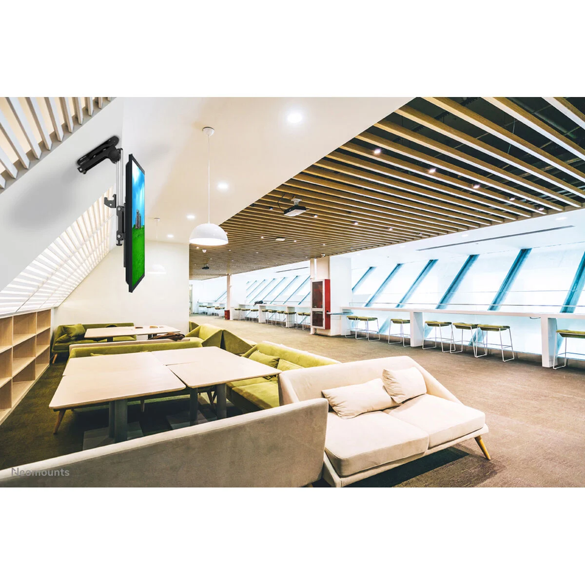 El soporte de techo FPMA-C020BLACK de Neomounts es un accesorio diseñado para montar con seguridad y versatilidad pantallas de tipo LCD, LED y TFT con un tamaño que oscila entre 10" y 40" (25,4 a 101,6 cm). Su diseño en color negro aporta discreción y se adapta fácilmente a diversos entornos domésticos o profesionales. Este soporte permite un amplio rango de ajustes para optimizar la posición de la pantalla, incluyendo una altura ajustable de 26,5 a 40 cm, inclinación de 0° a 90° y capacidad de giro, lo que facilita conseguir el ángulo de visión más cómodo y ergonómico. Está fabricado para fijarse al techo, ofreciendo una solución ideal cuando no es posible utilizar soportes de pared o sobremesa. Además, su compatibilidad con diferentes estándares de montaje se refleja en el soporte VESA, que admite patrones 75x75 mm hasta 200x200 mm (20x20 cm), máximo común en pantallas actuales, y puede complementarse con adaptadores para otros formatos. La capacidad máxima de peso soportada es de 20 kg, permitiendo asegurar televisores y monitores de tamaño mediano sin comprometer la estabilidad. Su construcción robusta garantiza durabilidad y una sujeción firme mientras permite movimientos suaves para ajustar la visión según las necesidades específicas del usuario. En conjunto, el Neomounts FPMA-C020BLACK es un soporte de techo funcional y completo, que aporta flexibilidad y seguridad para la instalación de pantallas de hasta 40 pulgadas en diversos espacios.