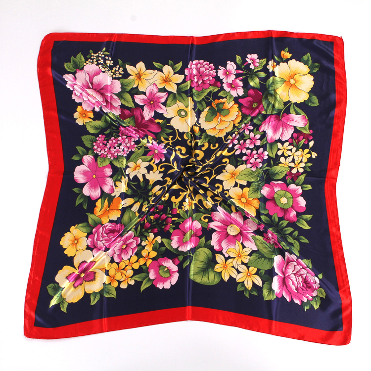 Spring And Autumn Women's Printed 90 Large Kerchief Artificial Silk Floral Scarf