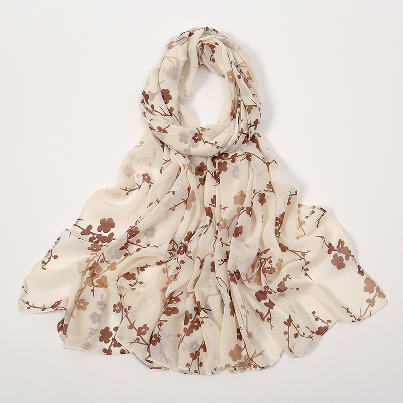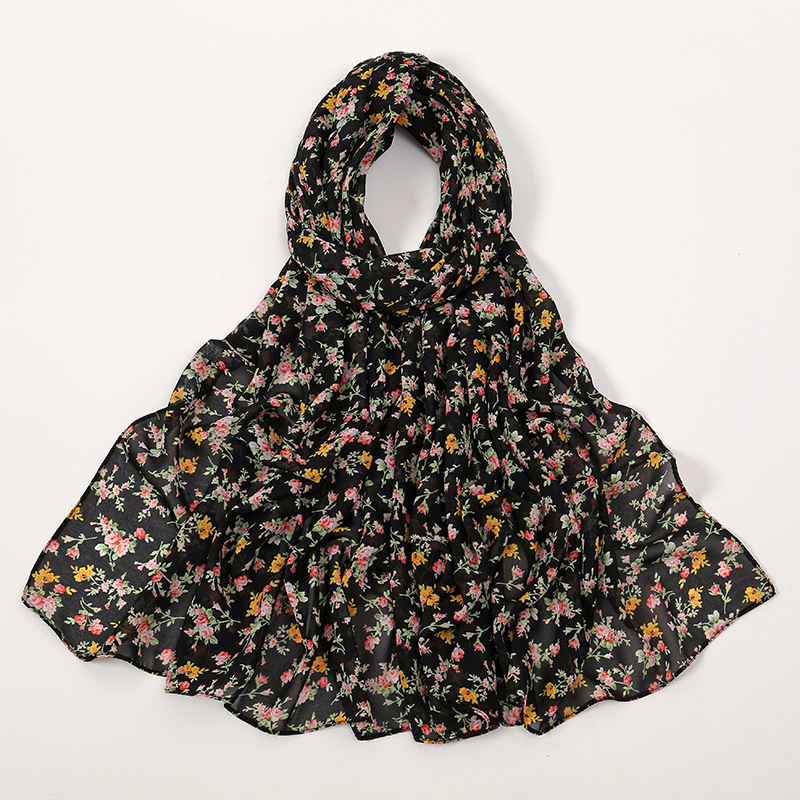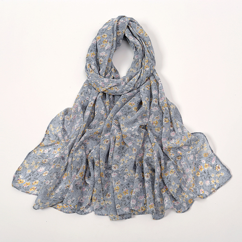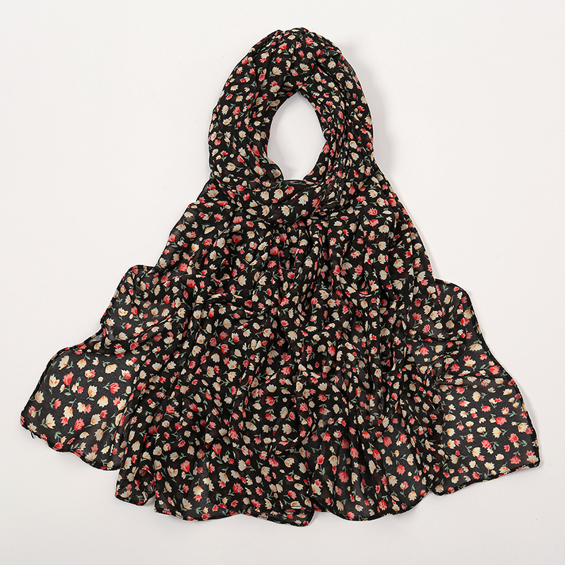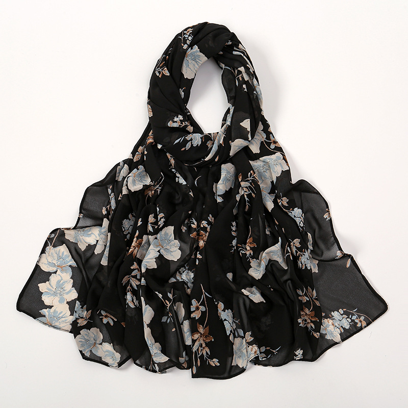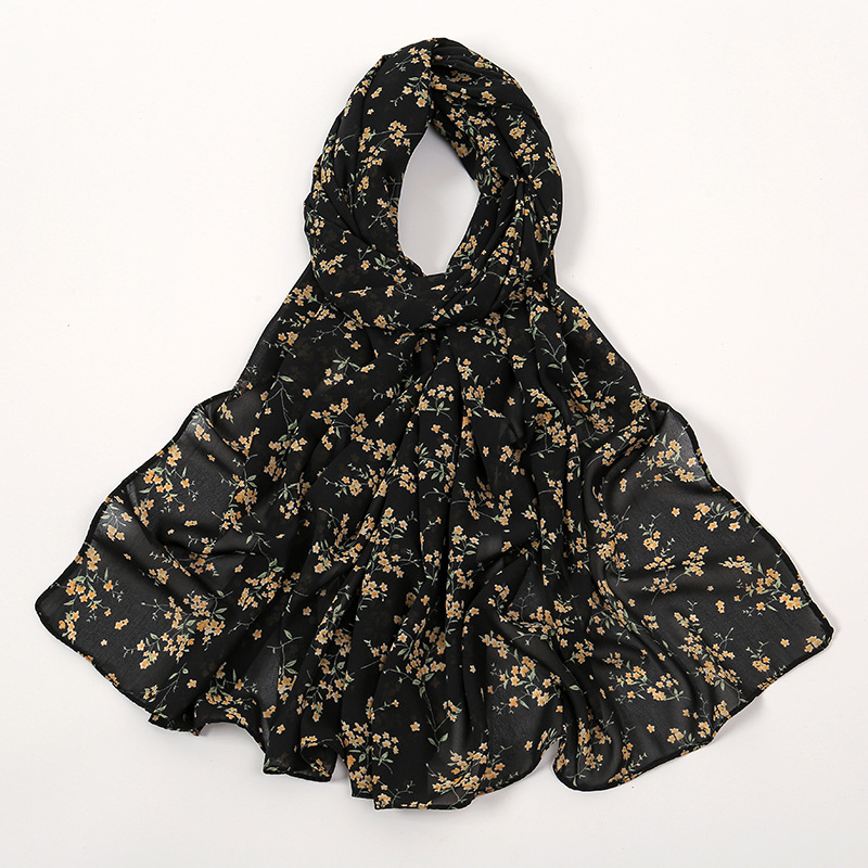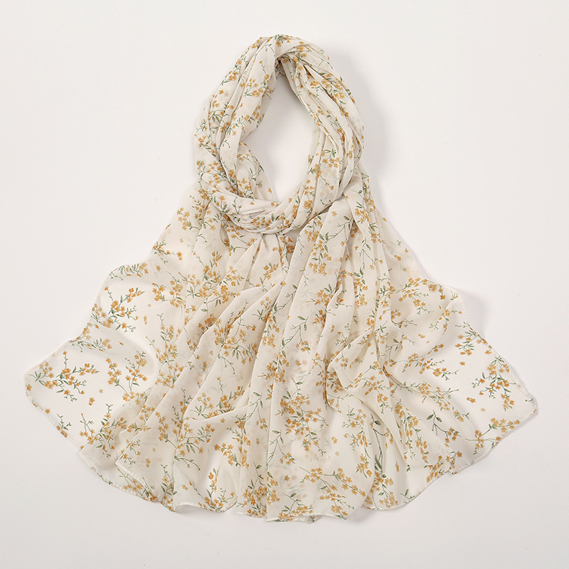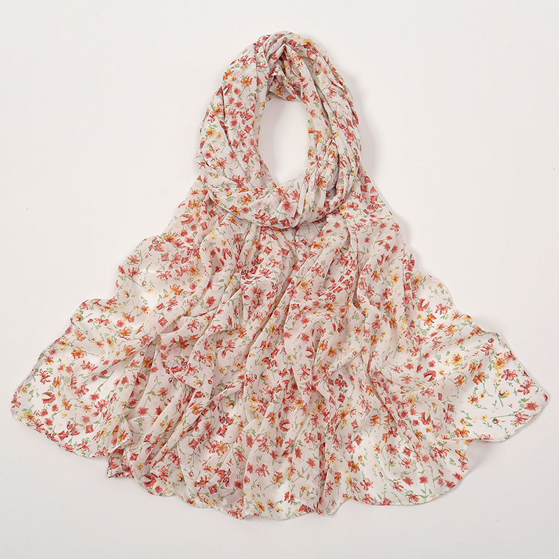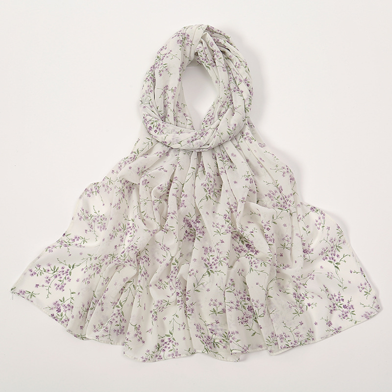 Spring And Summer Thin Fresh Flowers Floral Chiffon Printed Scarf