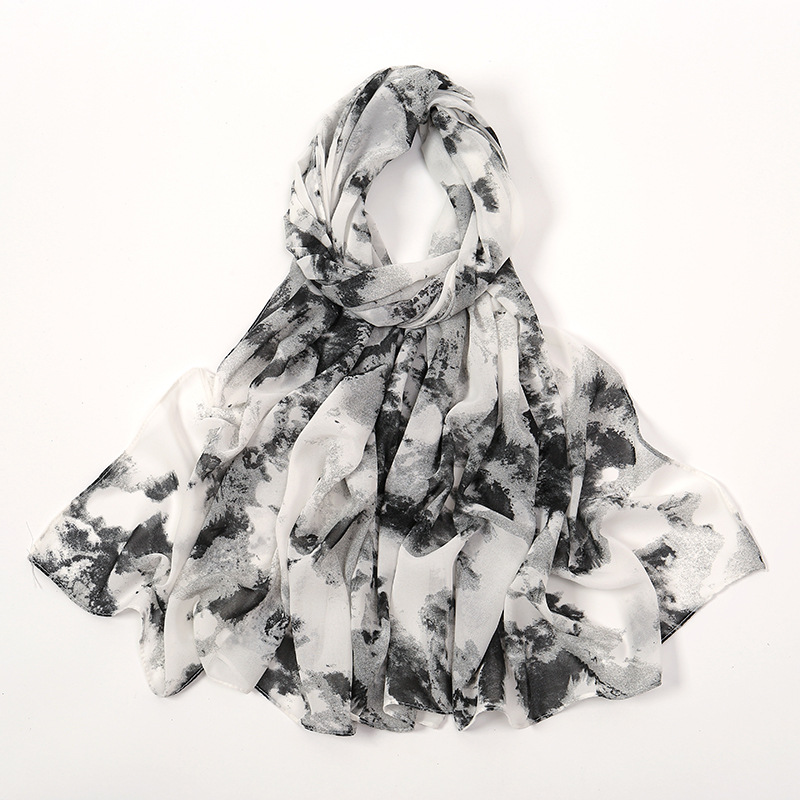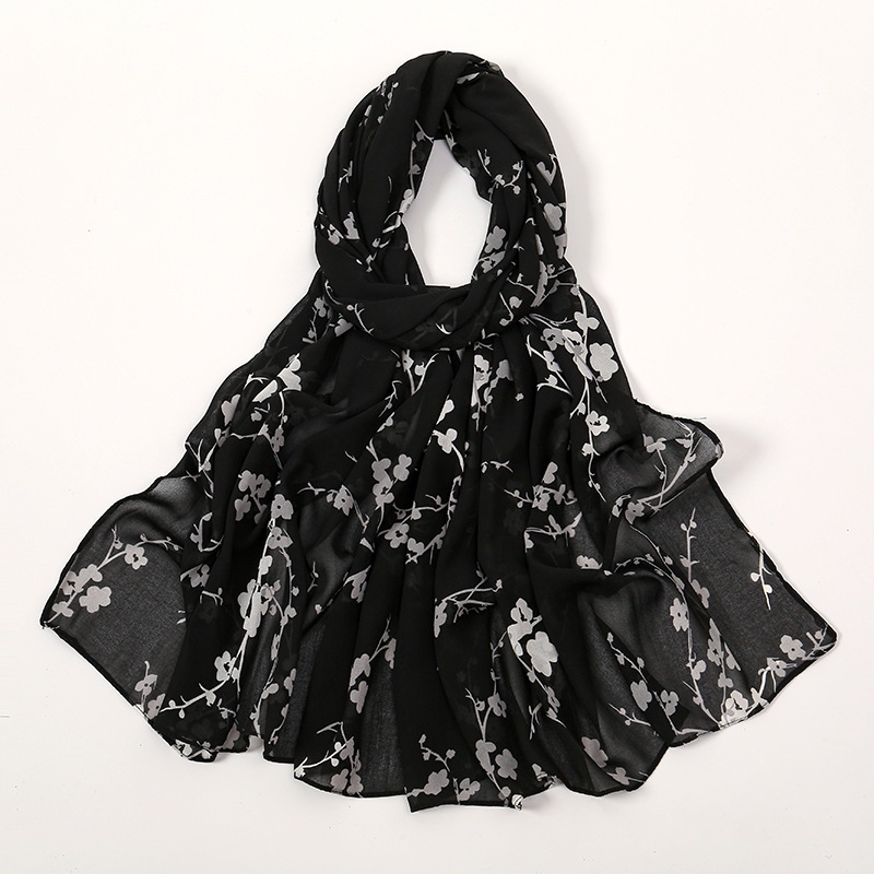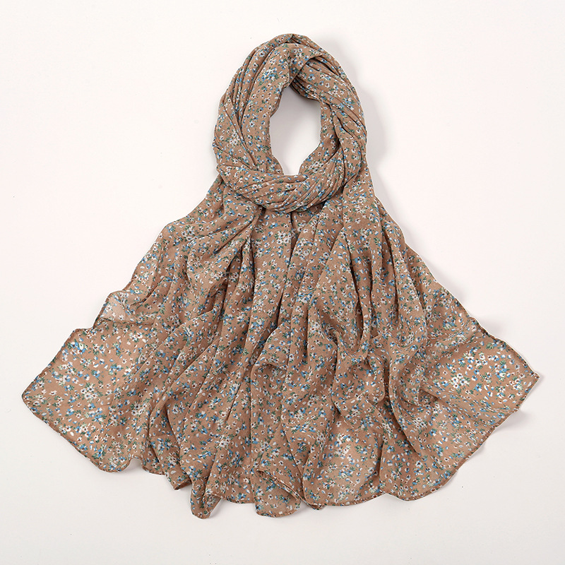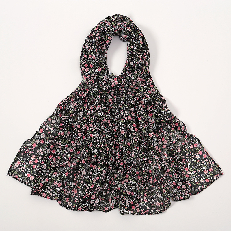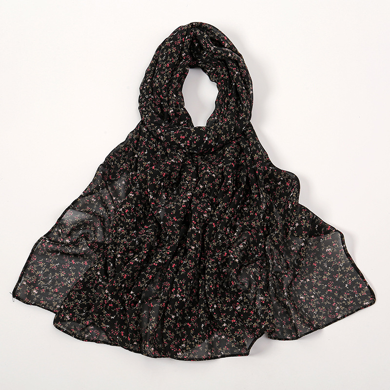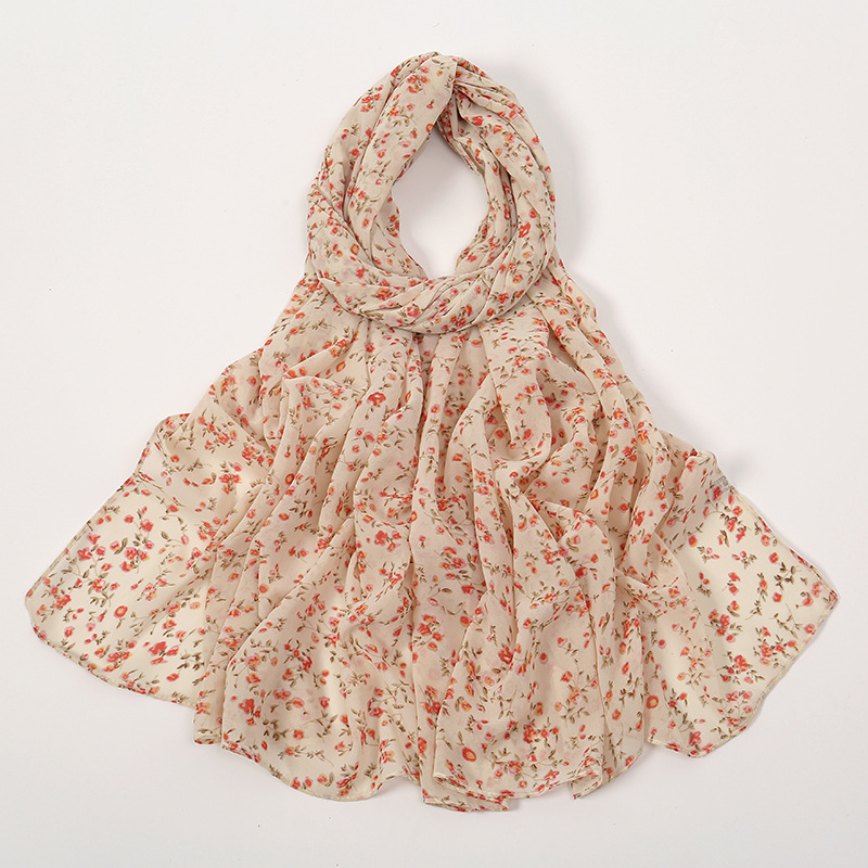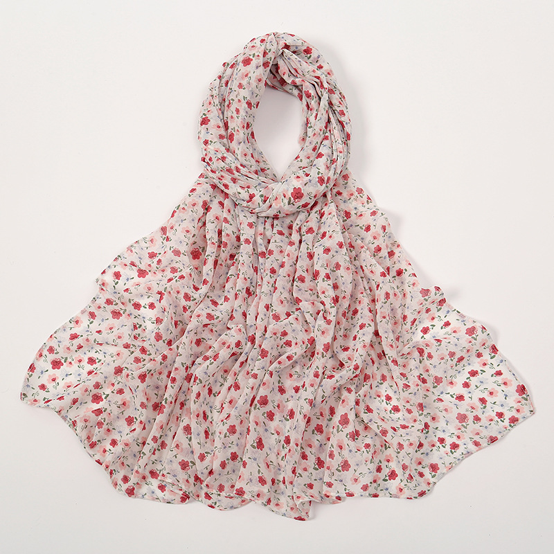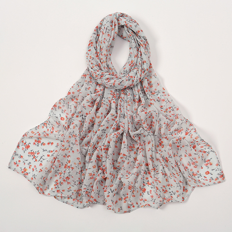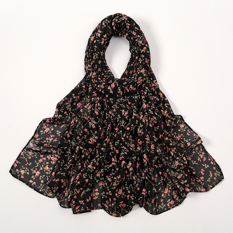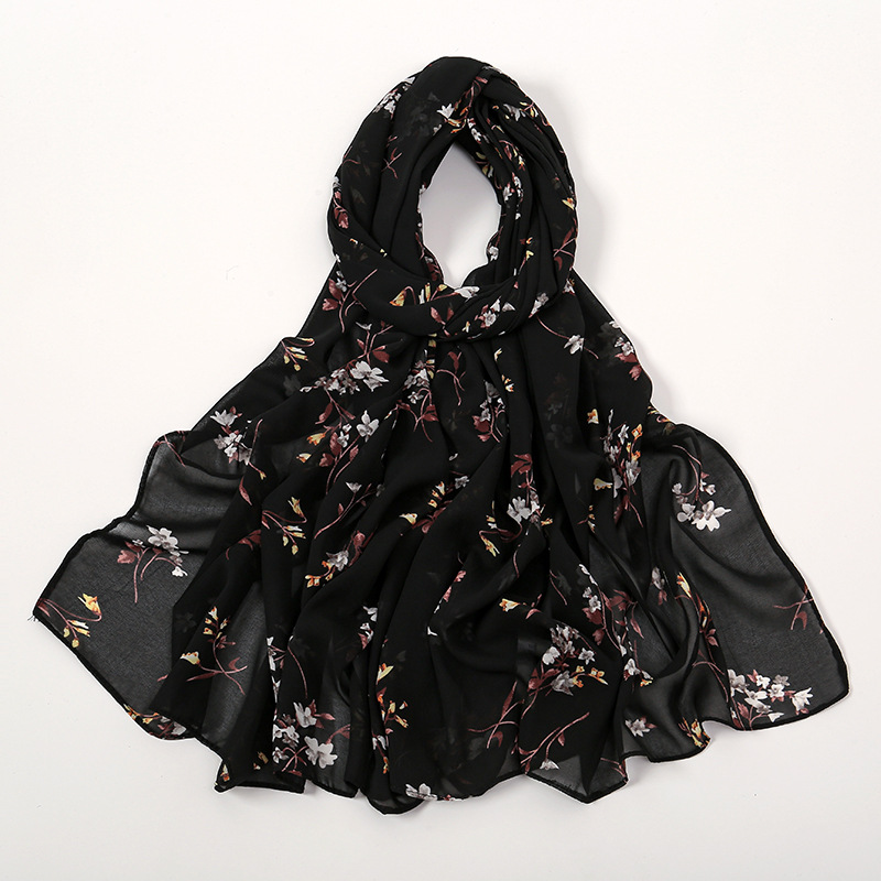 Spring And Summer Thin Fresh Flowers Floral Chiffon Printed Scarf