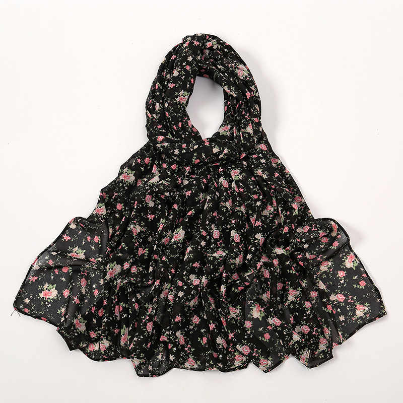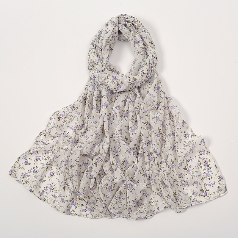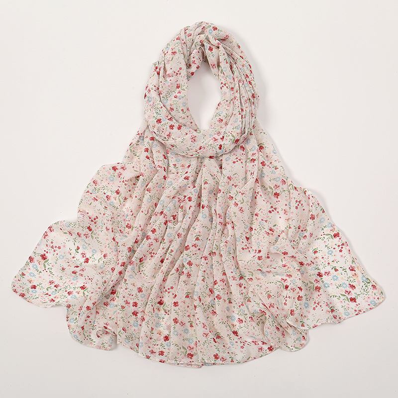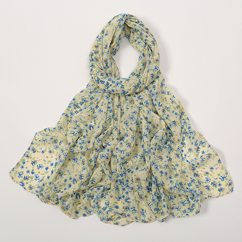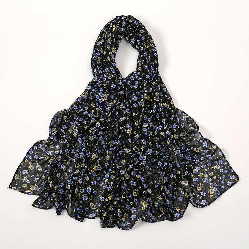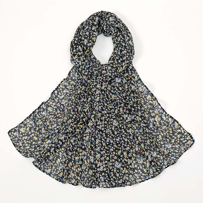 Spring And Summer Thin Fresh Flowers Floral Chiffon Printed Scarf -