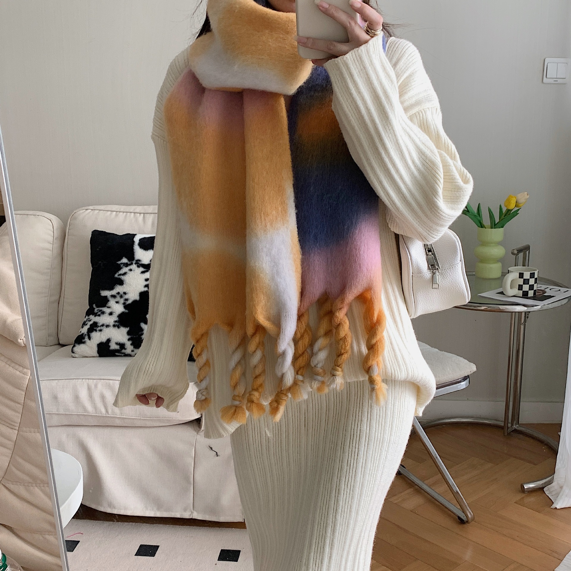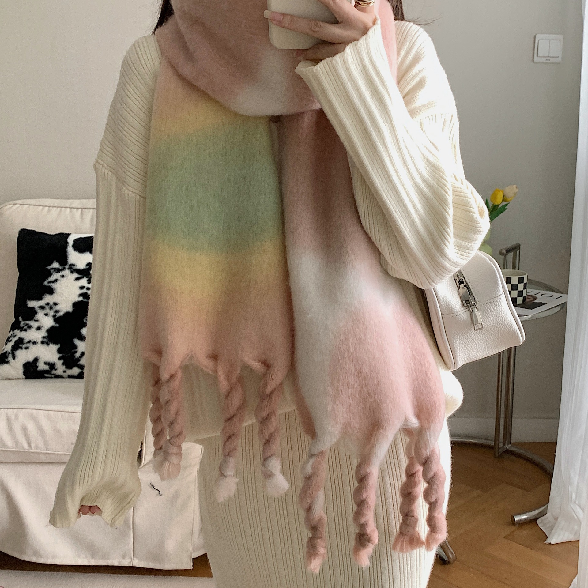 Sweet Girl's Cashmere Scarf Knotted Tassel Shawl -
