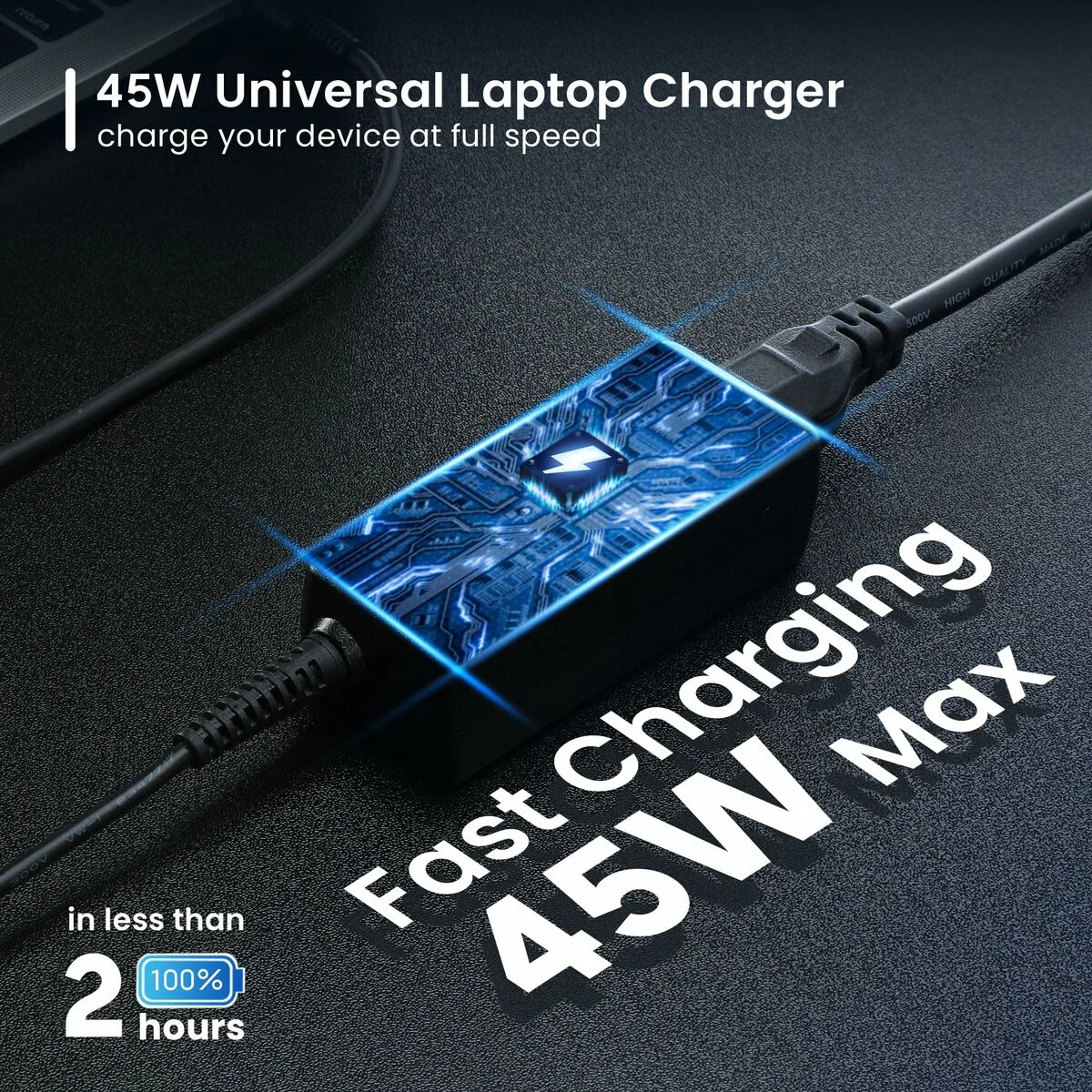 Para ver si el cargador universal es adecuado para su subportátil o equipo portátil, puede calcular la potencia de estos equipos. En primer lugar, compruebe el cargador de corriente o las propiedades del equipo portátil. A continuación, multiplique el voltaje por el amperaje para calcular la potencia total necesaria. Por ejemplo, si el cargador de corriente tiene una salida de 15 V y 3 A, necesita un adaptador de 45 W (15 V x 3 A) como mínimo.