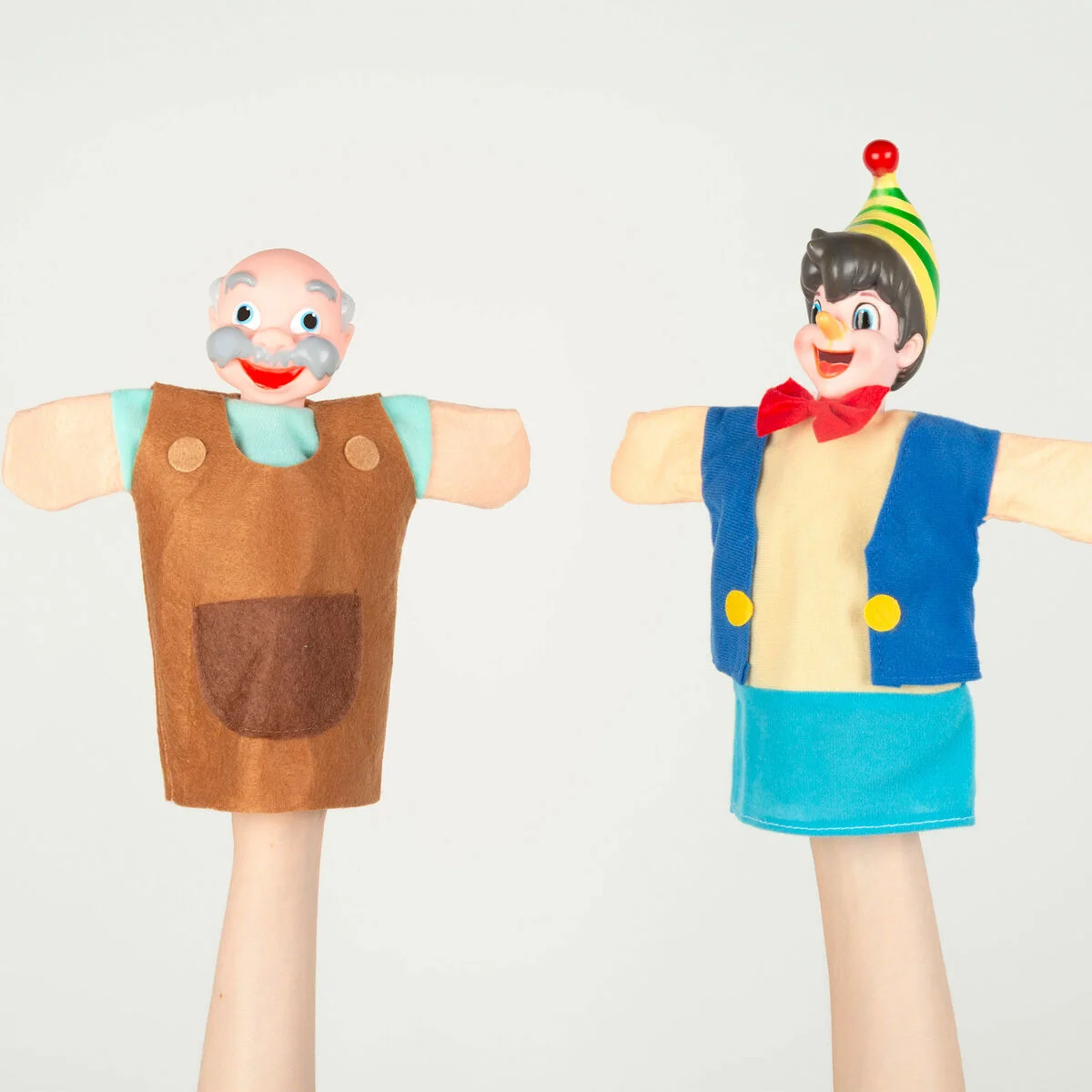 ¡Dale vida al cuento de Pinocho con el teatro de marionetas Cucu Show! El pack incluye un gran escenario de marionetas de 44 x 60 cm colorido y fácil de montar, perfecto para representar historias y crear un escenario en cualquier rincón. También contiene 4 títeres de mano con los personajes principales: Pinocho, Gepetto, el Zorro y el Hada Azul. Las marionetas están confeccionadas con telas suaves, y diseñadas con colores llamativos y expresiones simpáticas para dar vida a la historia. Cada una mide 25 cm, un tamaño perfecto para manos pequeñas y también cómodo para que los adultos puedan participar. Ideal para que los peques desarrollen la imaginación, la socialización, mejoren la coordinación ojo-mano y potencien el lenguaje desde los 3 años. ¡Una opción perfecta para compartir tiempo en familia y crear momentos inolvidables!