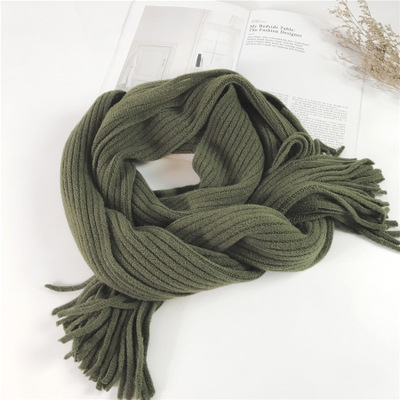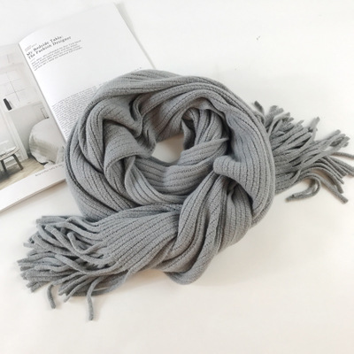 Thickened Warm Long Solid Color Tassel Knitted Wool Scarf