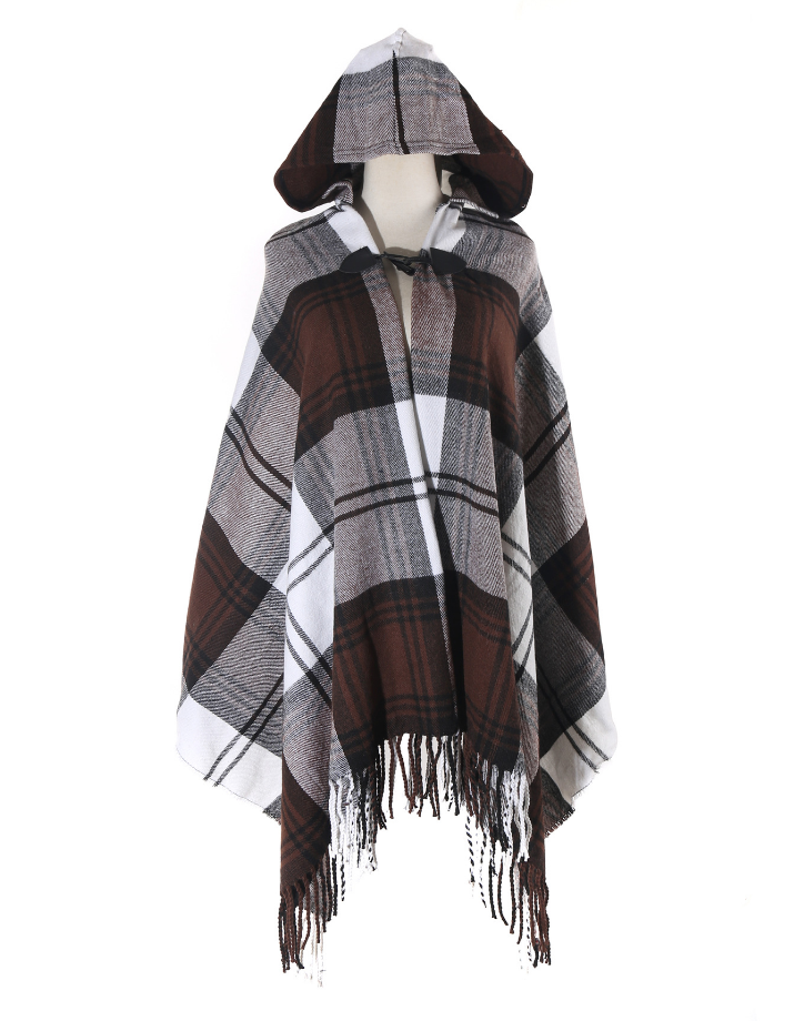 Tribal Bohemian Cape With Hoodie Khaki -