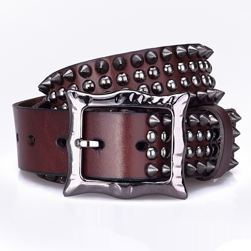 Unisex Day-Clasp Pointed Rivet Belt Made From Full-Grain Cowhide Leather -