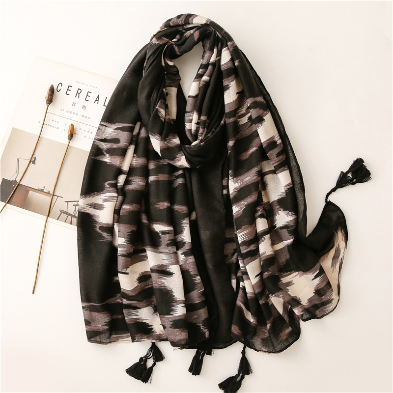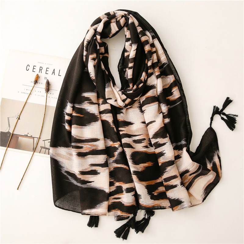 Versatile Leopard Women's Tassel Warm Sunscreen Scarf