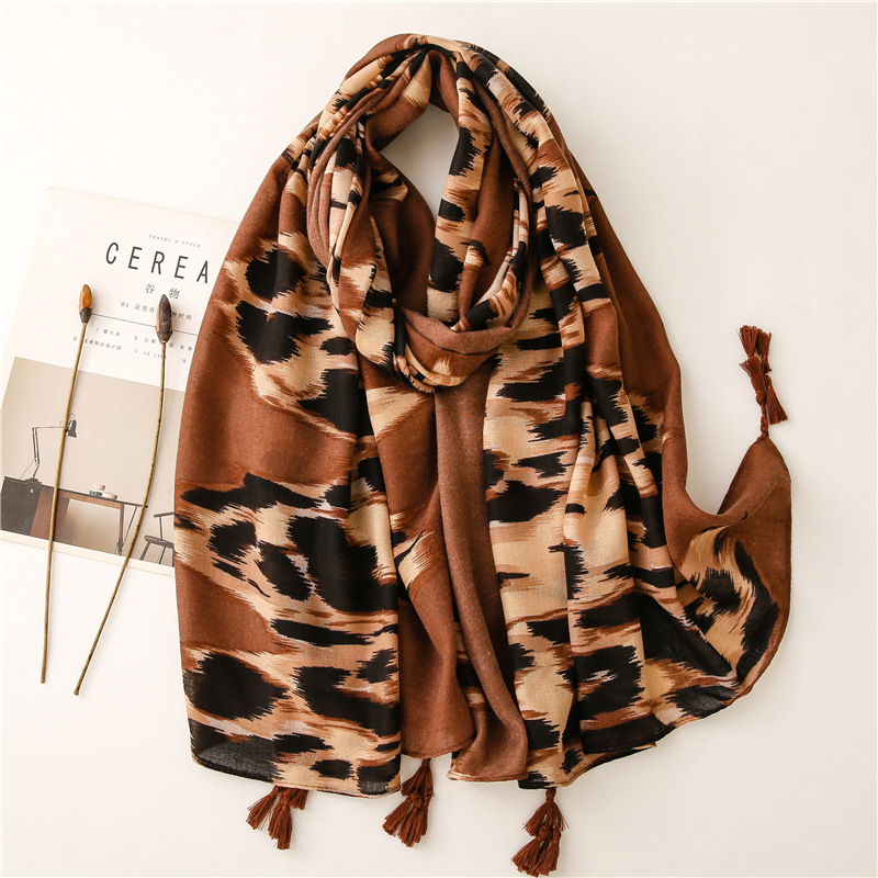 Versatile Leopard Women's Tassel Warm Sunscreen Scarf -
