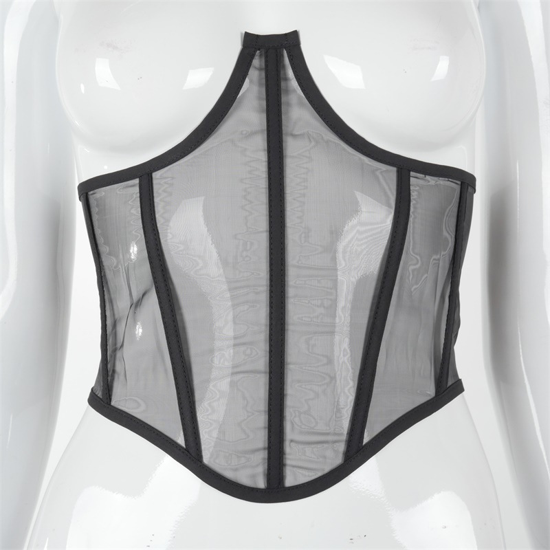 Versatile Solid Color Mesh Breastplate Fishbone Tie Rope Tunic