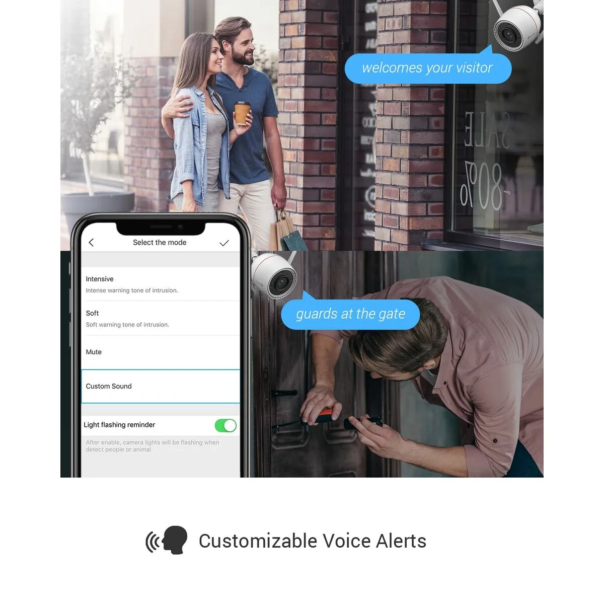 EZVIZ H3C 2K. Tipo: Cámara de seguridad IP, Colocación soportada: Exterior, Tecnología de conectividad: Inalámbrico y alámbrico. Tipo de montaje: Pared, Color del producto: Blanco, Factor de forma: Bala (forma). Iluminación mínima: 0,01 lx, Ángulo de visión de la lente, horizontal: 82°, Ángulo de visión de la lente, vertical: 98°. Tipo de sensor: CMOS, Tamaño del sensor óptico: 25,4 / 2,7 mm (1 / 2.7"). Distancia de visión nocturna: 30 m, Tipo de LED: IR