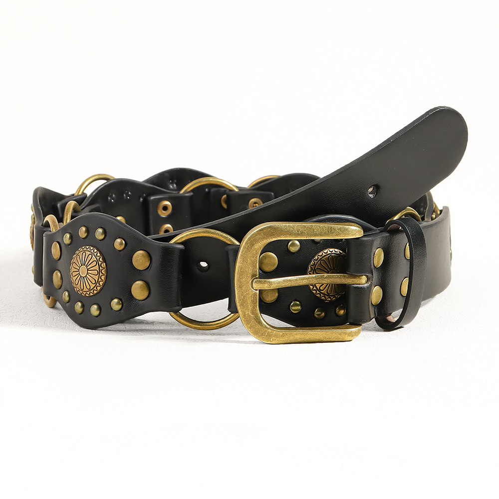 Vintage Belts For Both Men And Women With Handsome Riveted Metal Buckle Punk Hip Hop Fashion Accessories