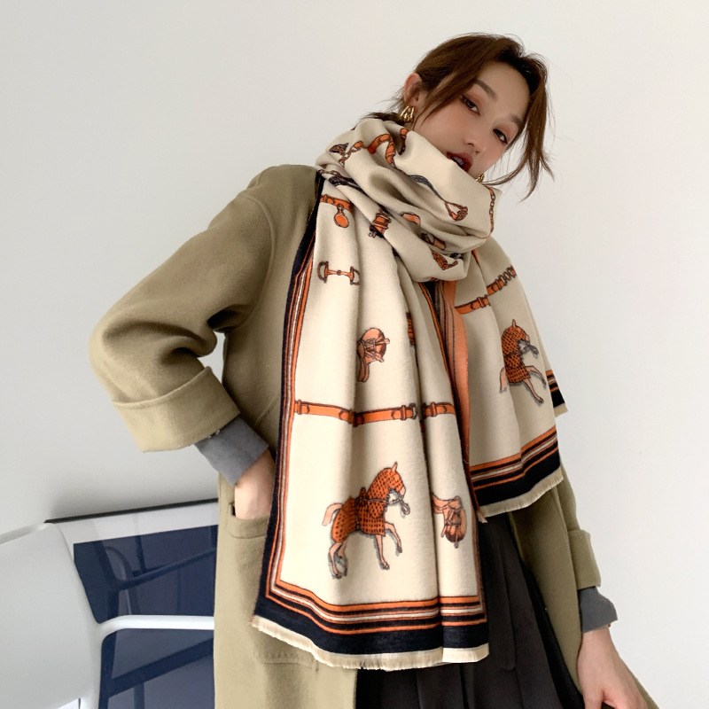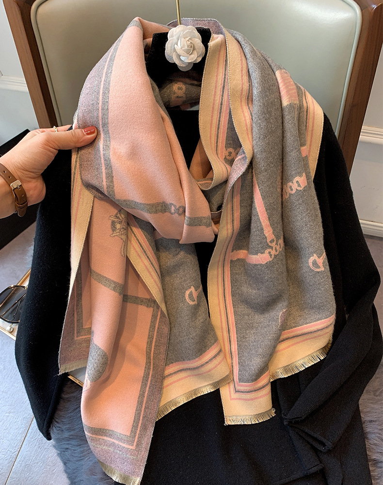 Vintage carriage chain imitation cashmere scarf -