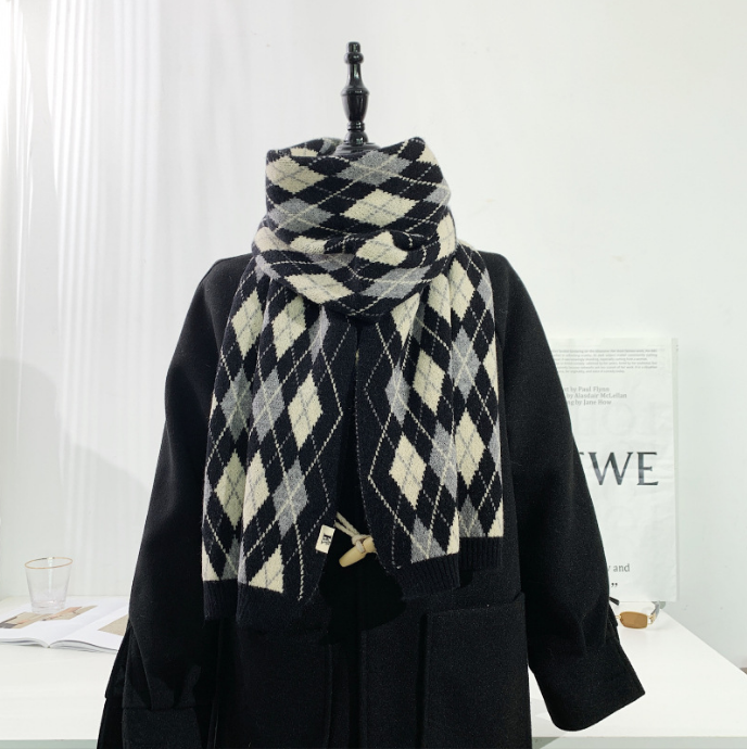 Warm Diamond Lattice Long Solid Color Soft Scarf -