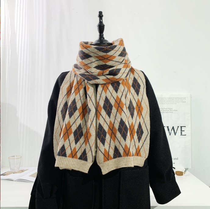 Warm Diamond Lattice Long Solid Color Soft Scarf
