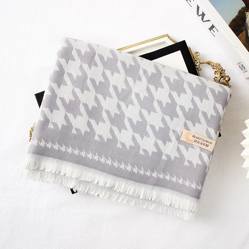 Warm Shawl Size Houndstooth Long Short Beard Scarf