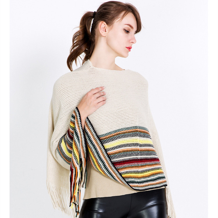 Warp-knitted Color Block Jacquard Striped Pullover Shawl -