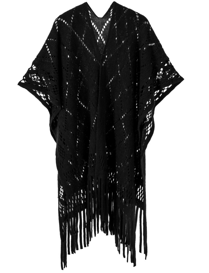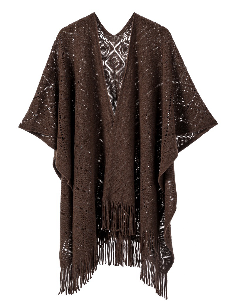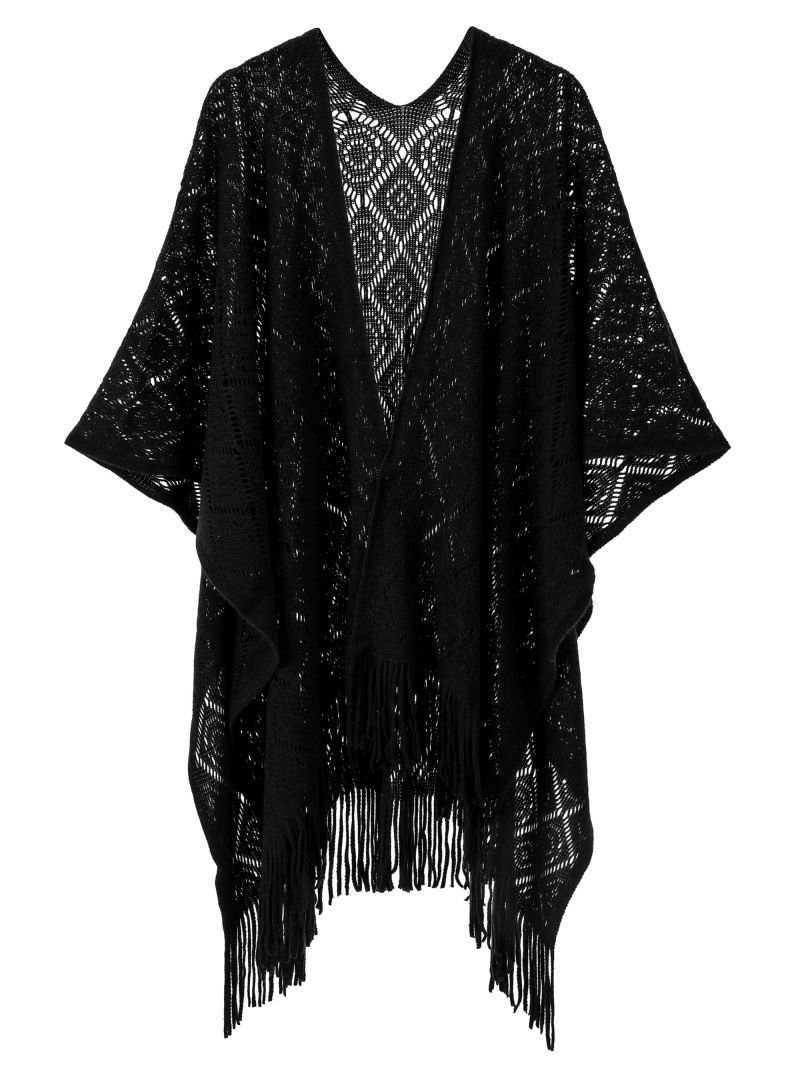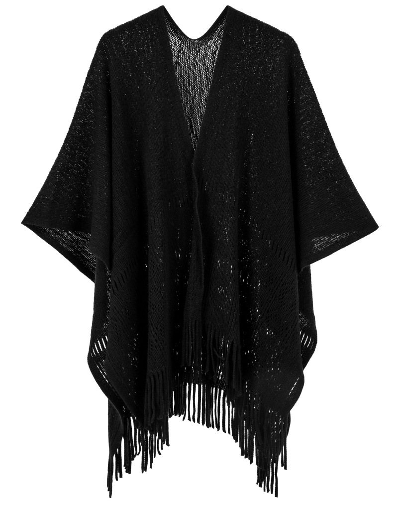Warp Knitted Solid Color Tassel Thin Hollow Shawl