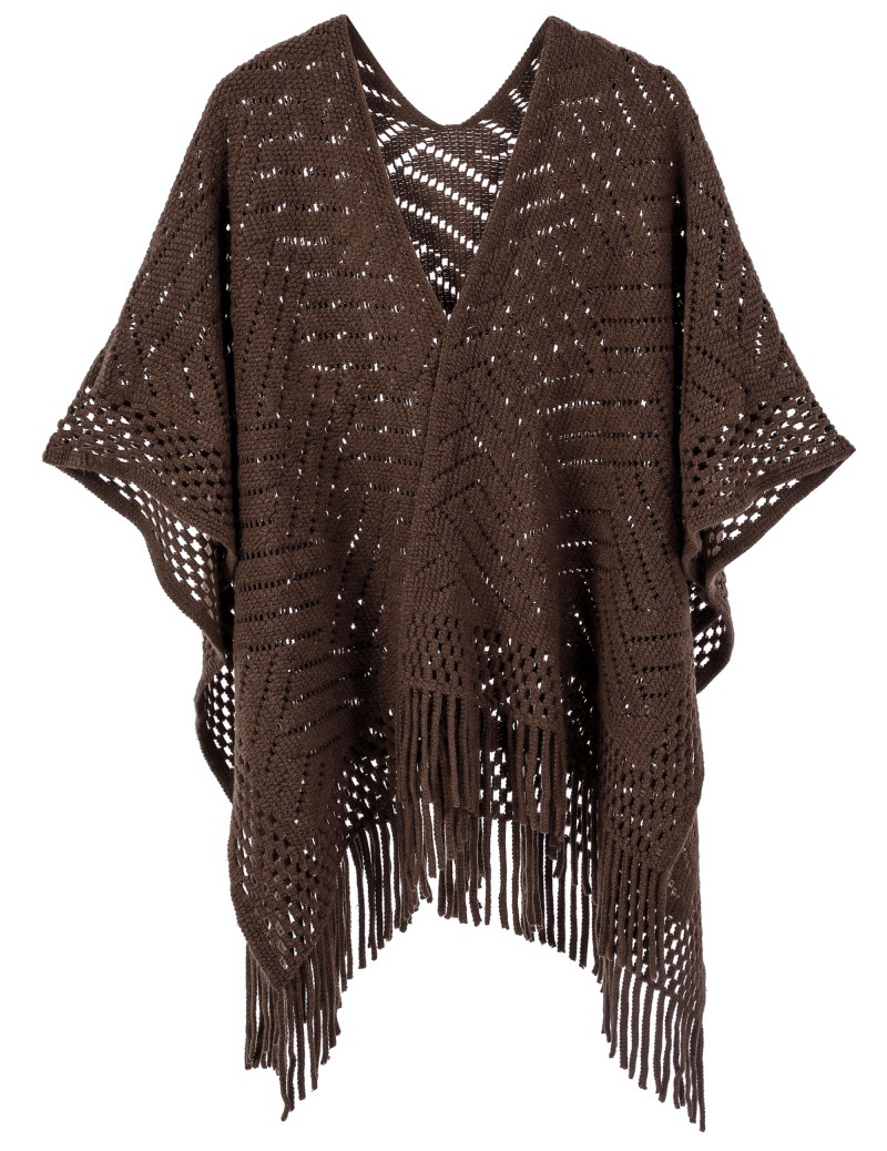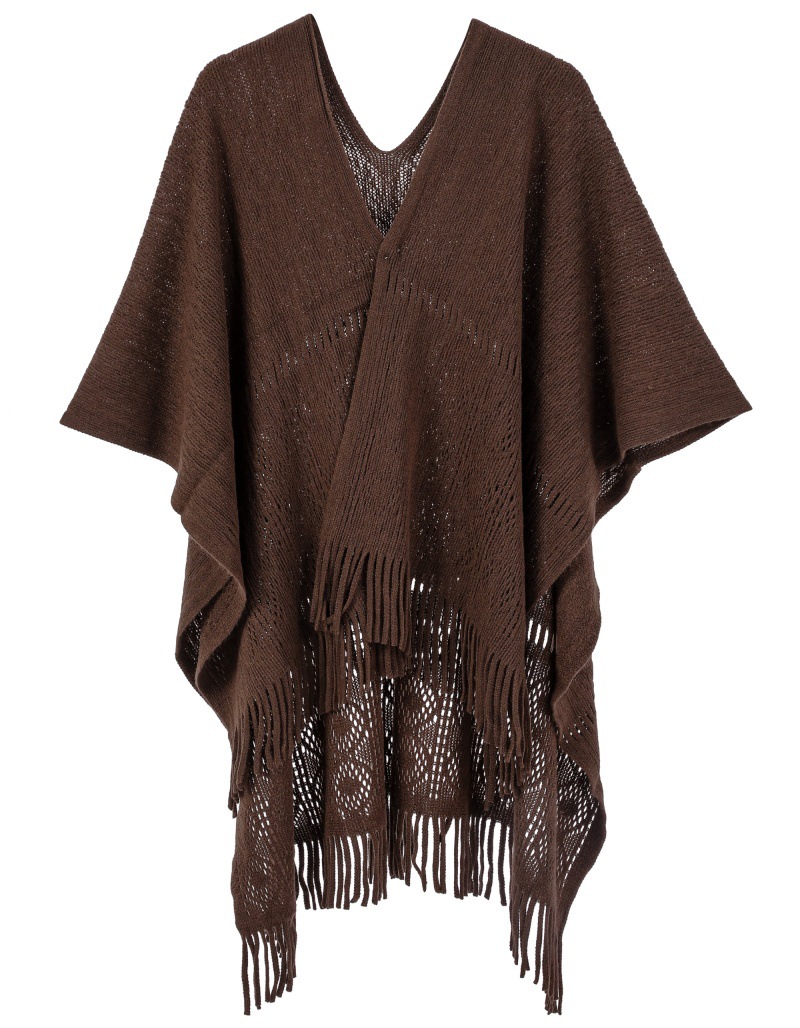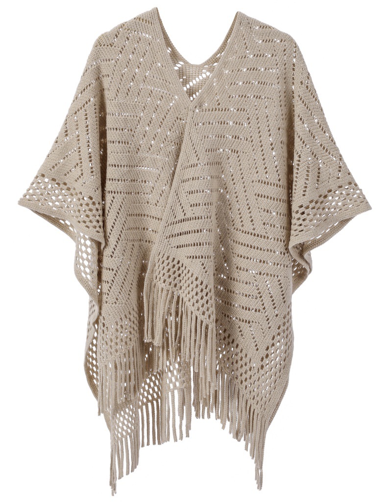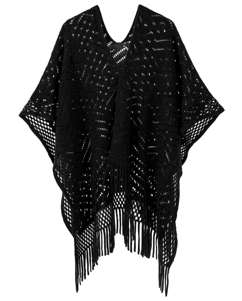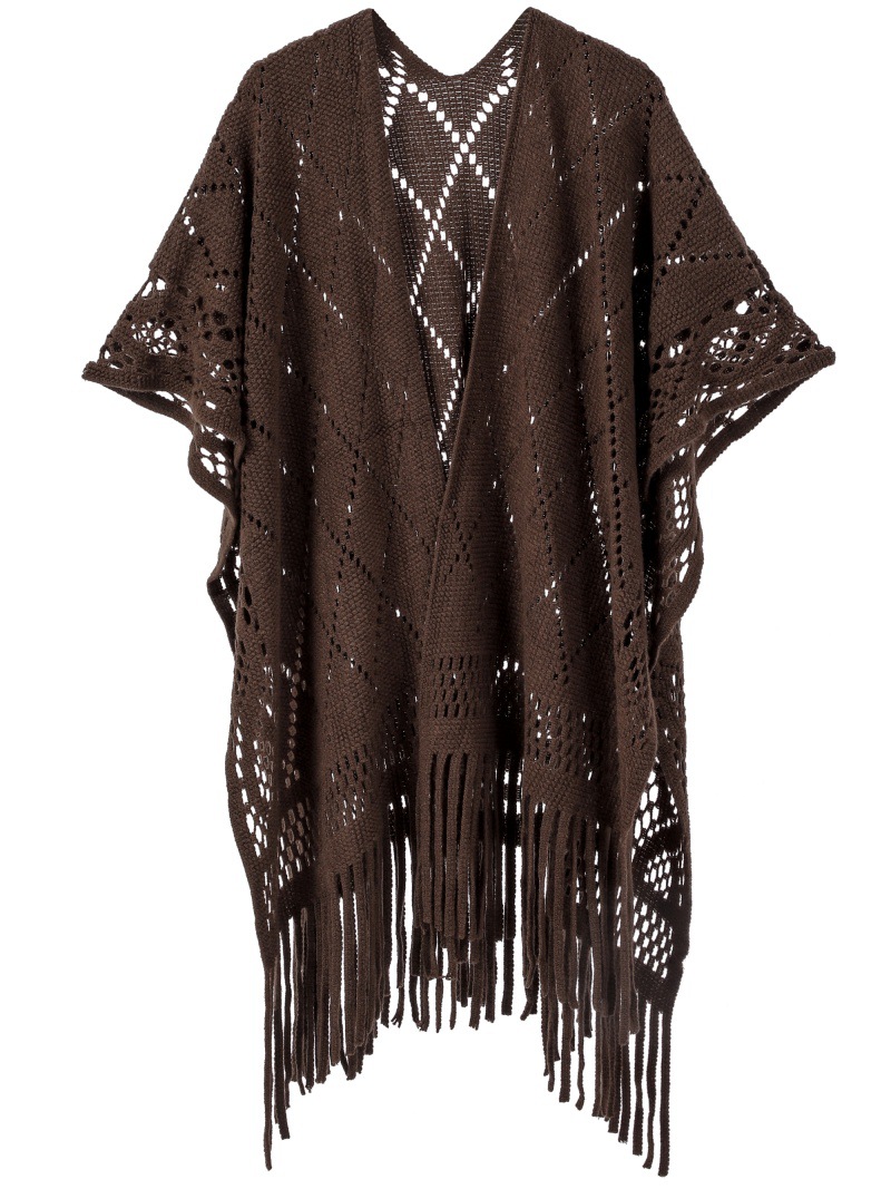 Warp Knitted Solid Color Tassel Thin Hollow Shawl