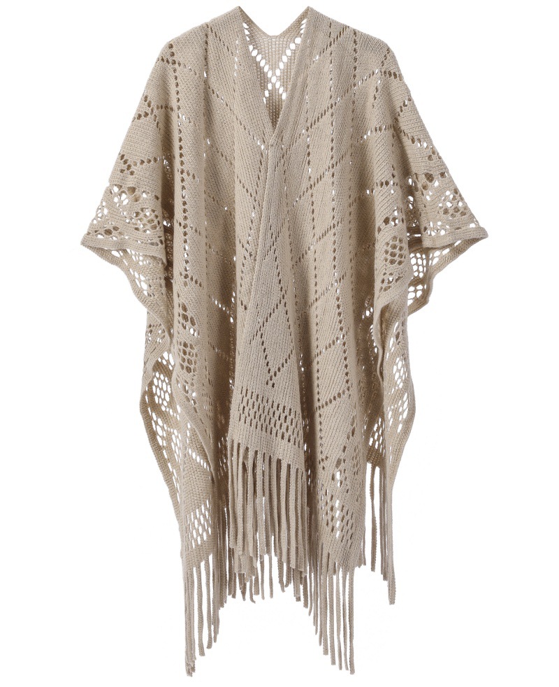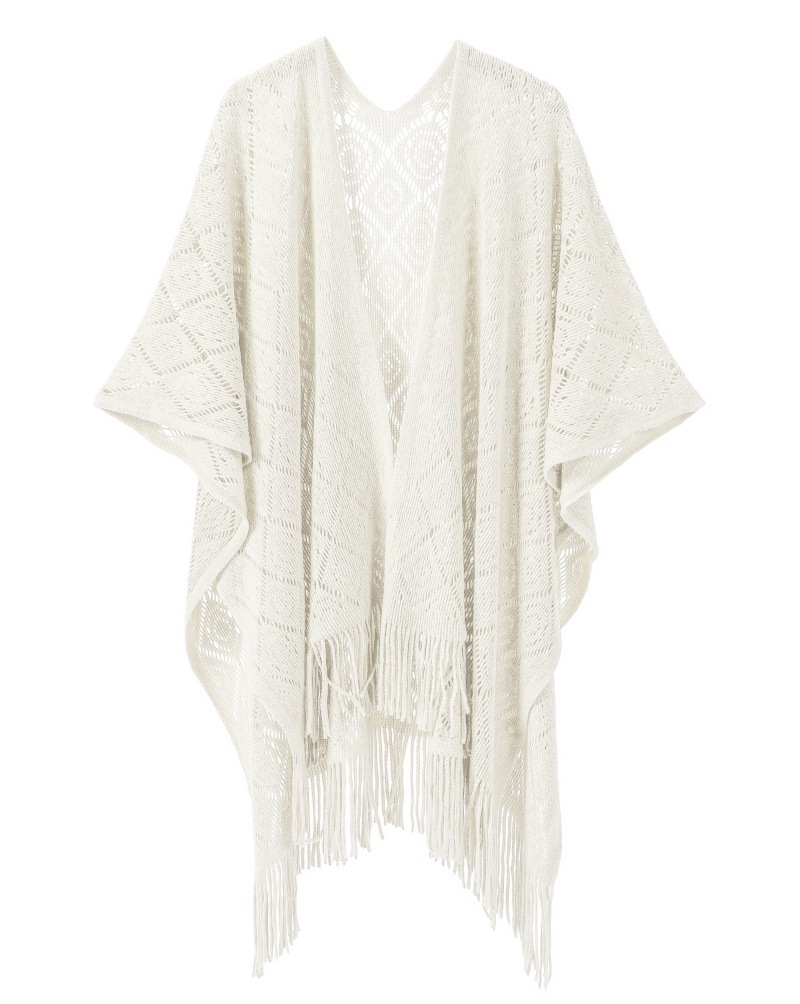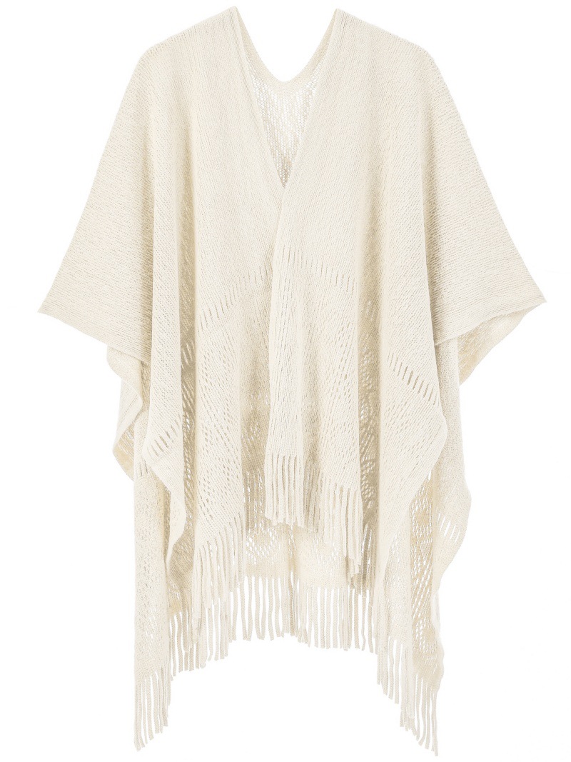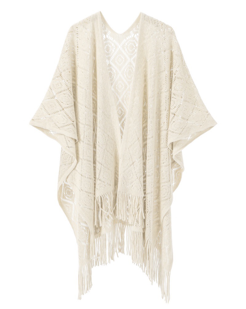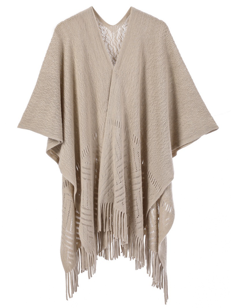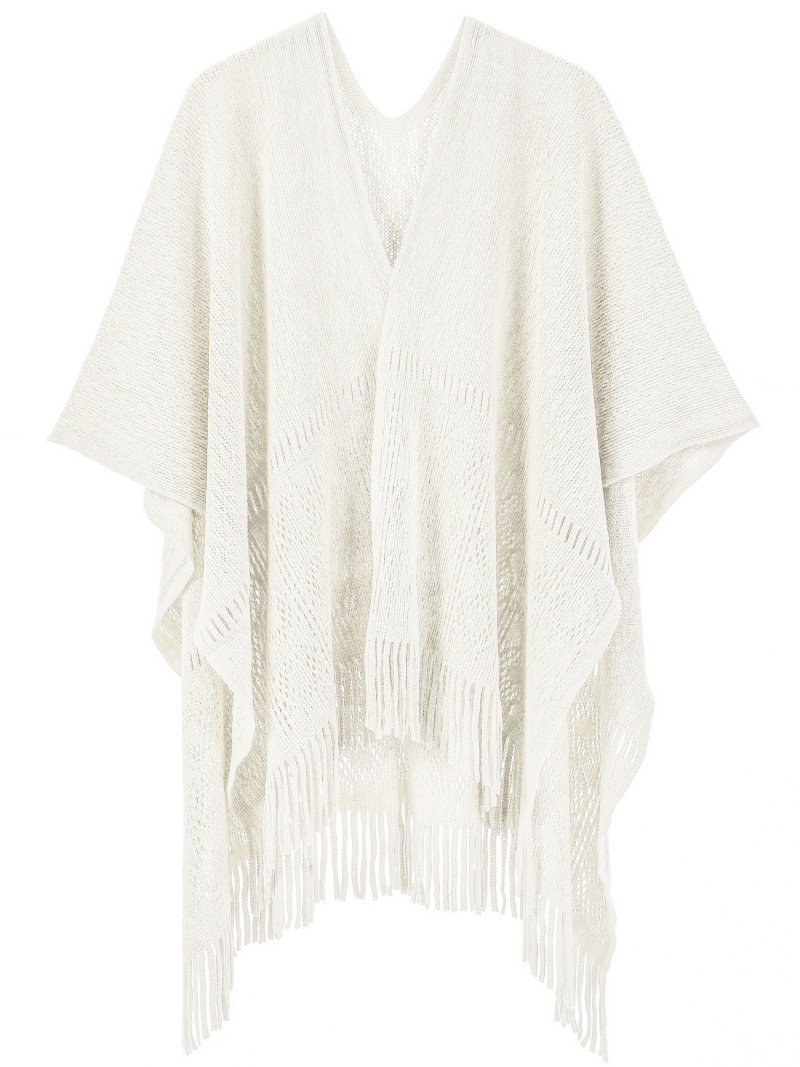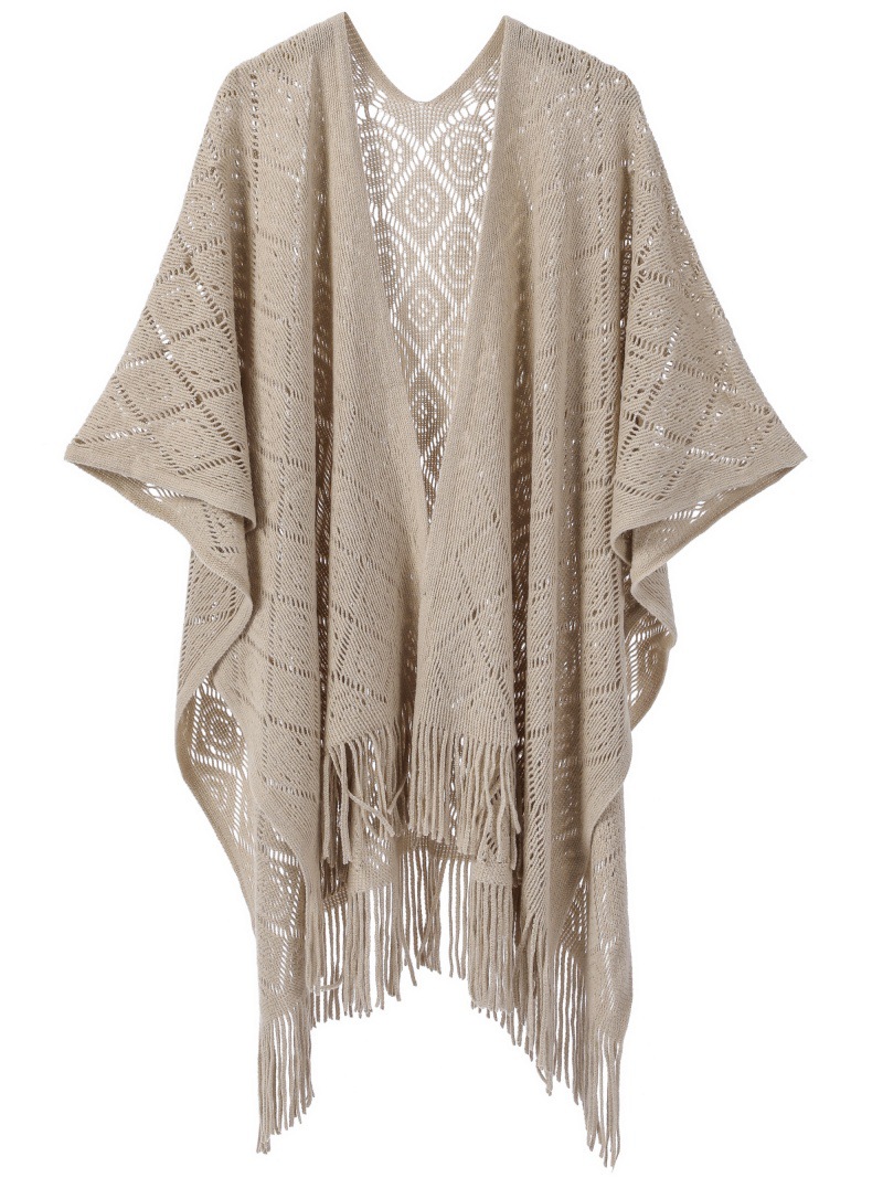 Warp Knitted Solid Color Tassel Thin Hollow Shawl -