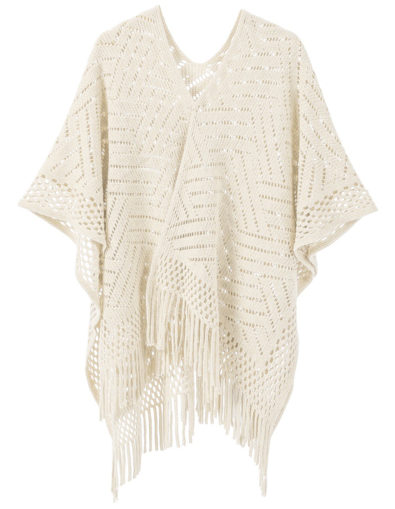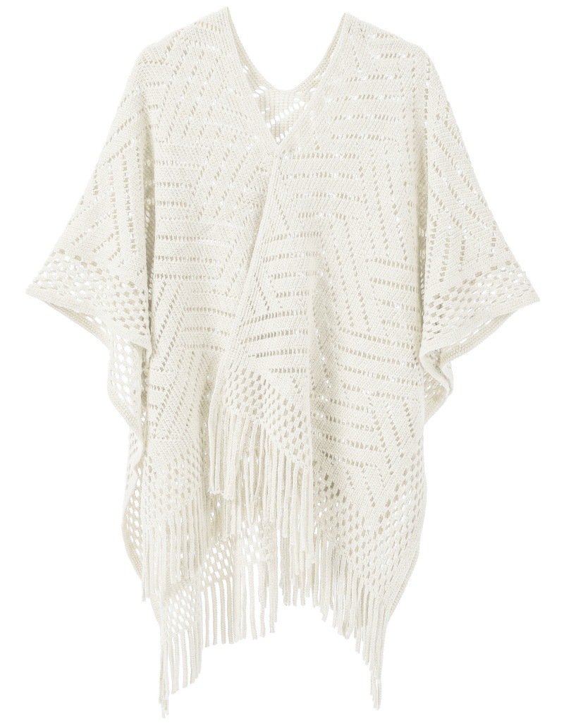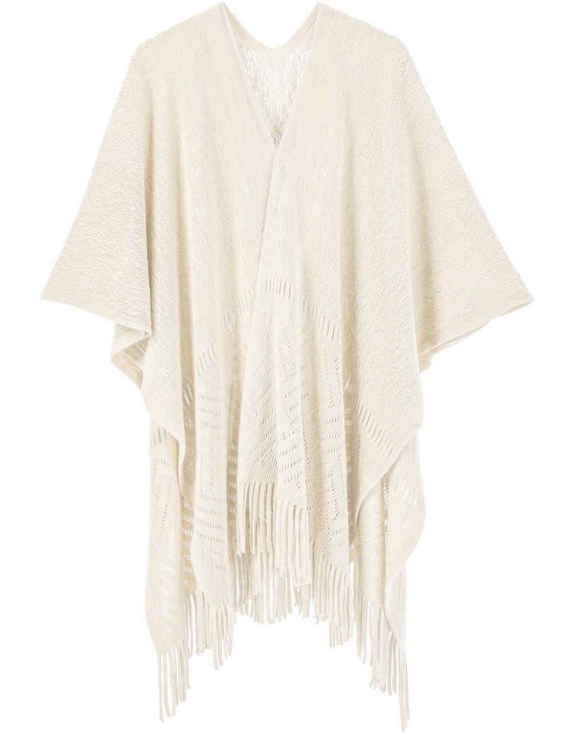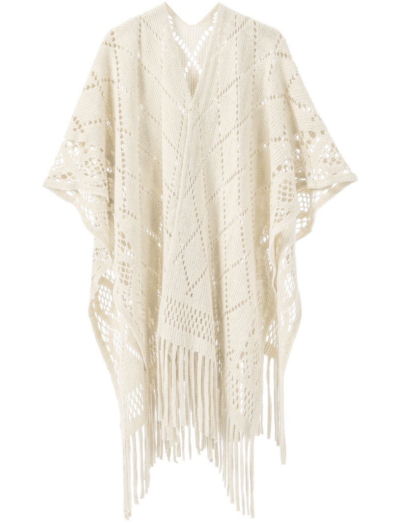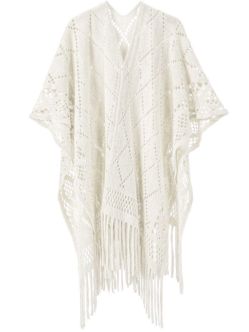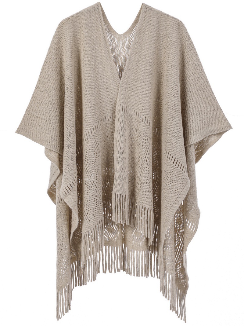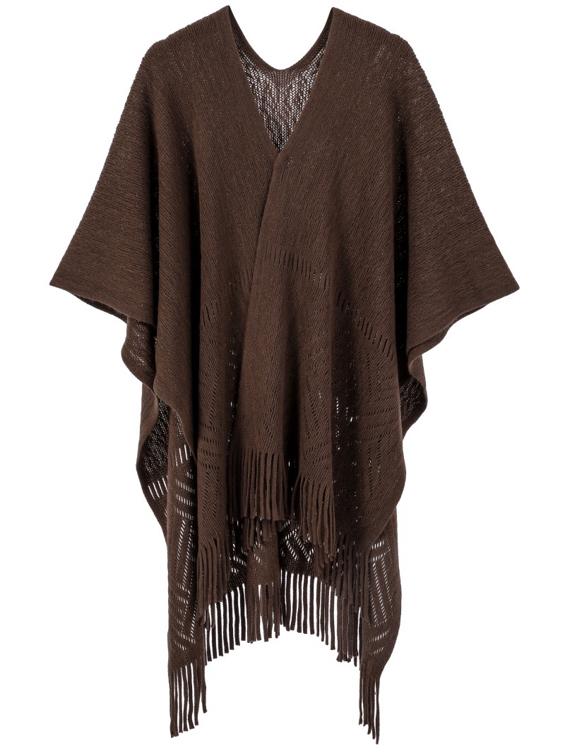 Warp Knitted Solid Color Tassel Thin Hollow Shawl -