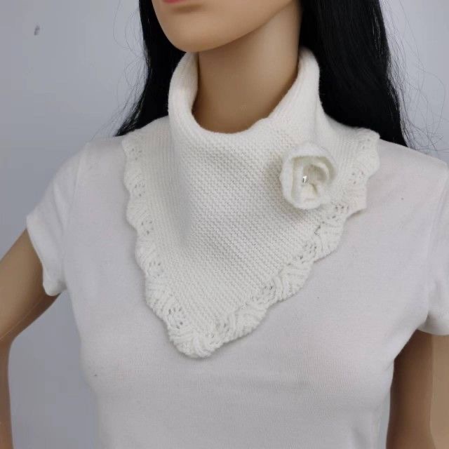 Wave Edge Small Flower Scarf Knitted Scarf Crocheted Triangular Binder