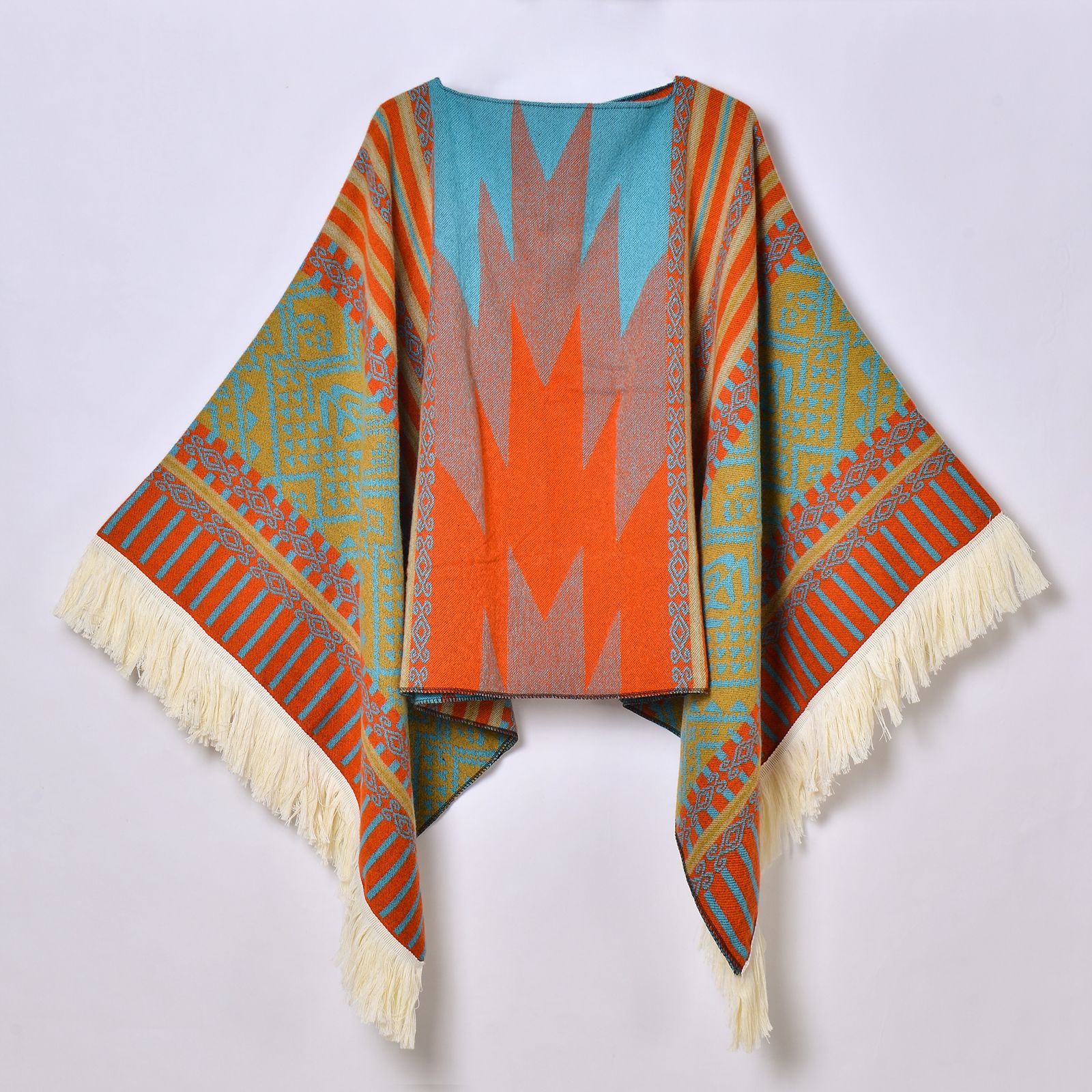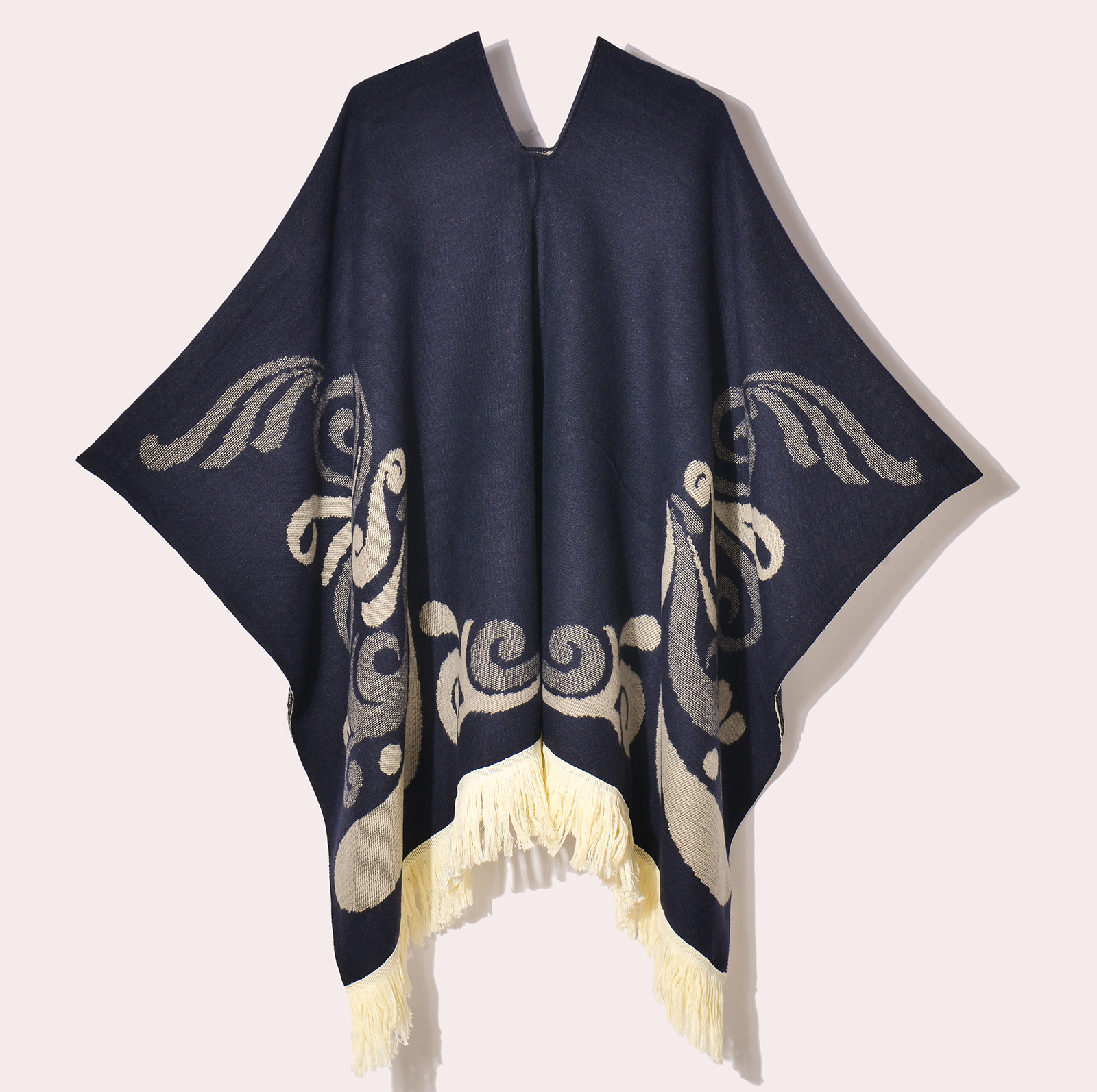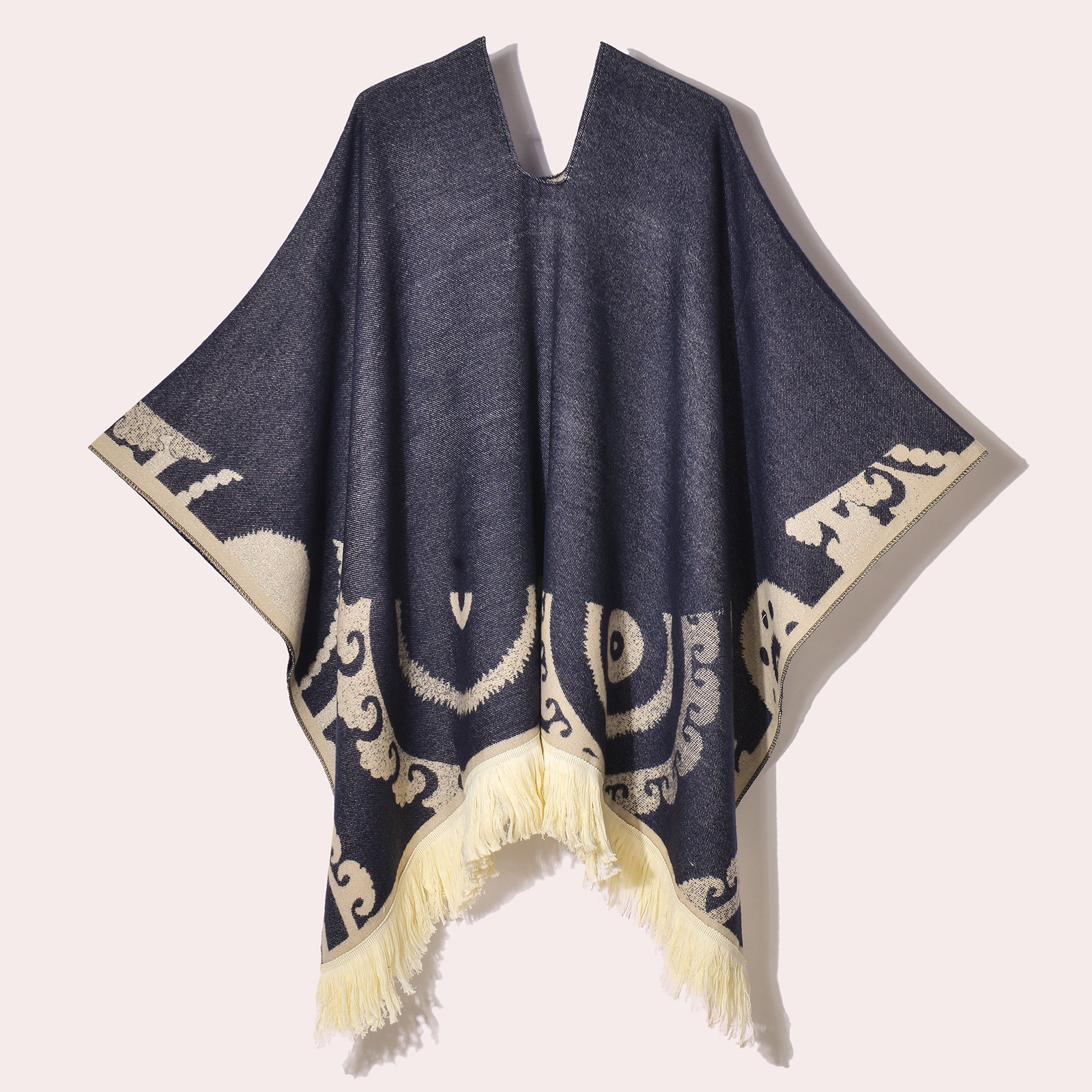 Western Denim Style Men's And Women's Shawl Tassel Pullover Keep Warm Outdoor Large Cloak