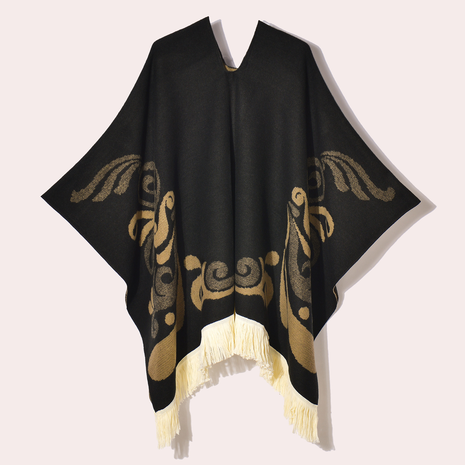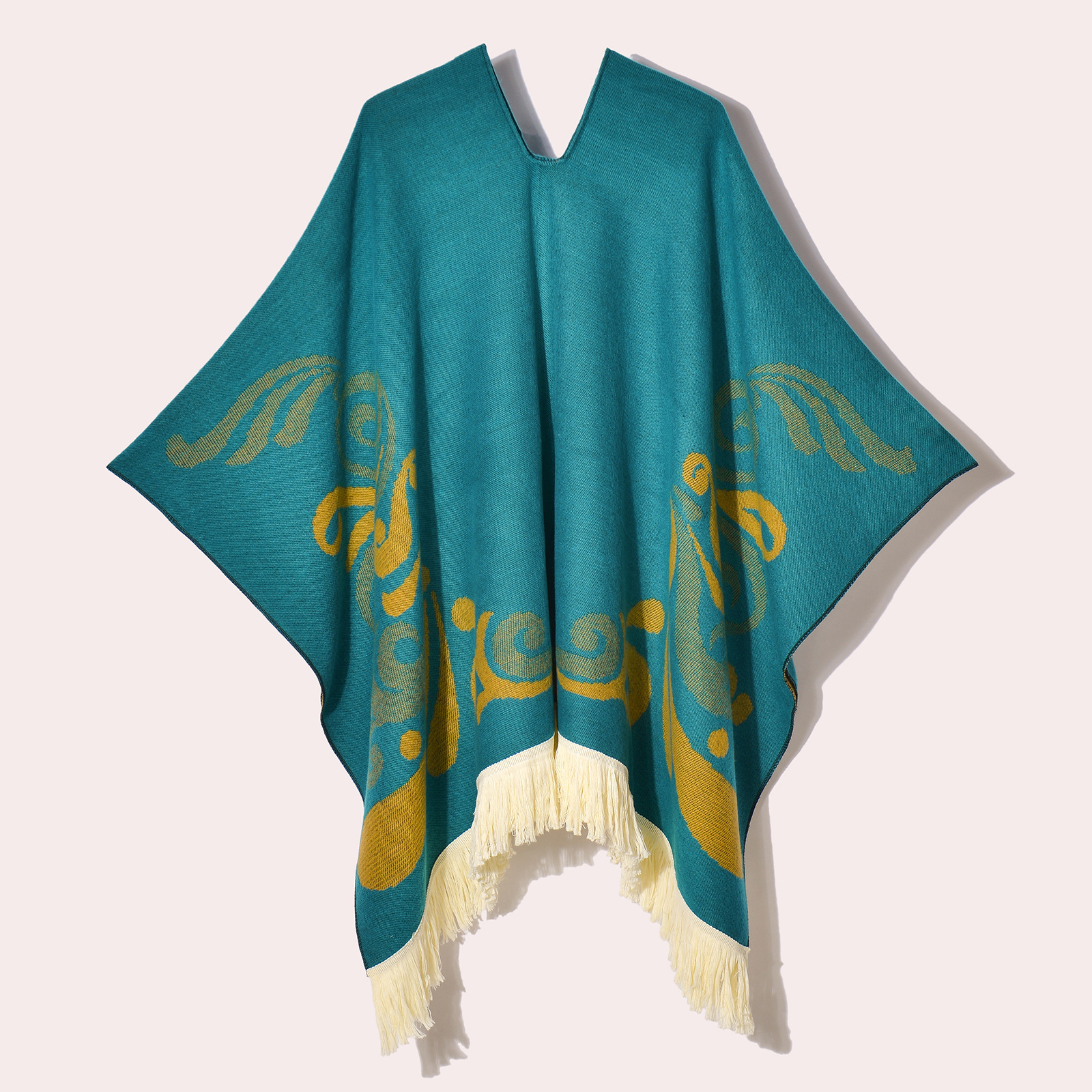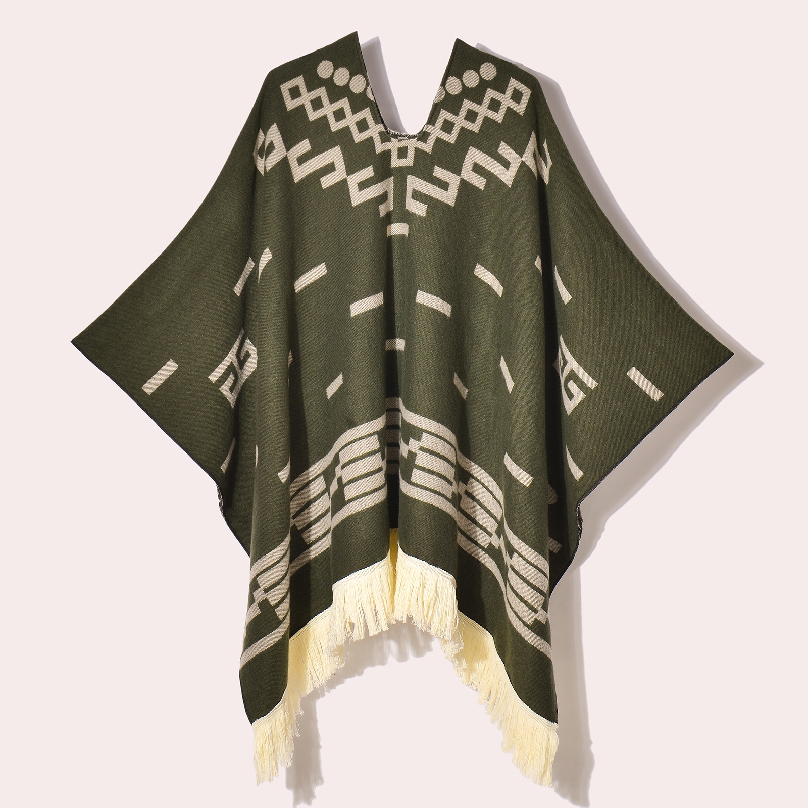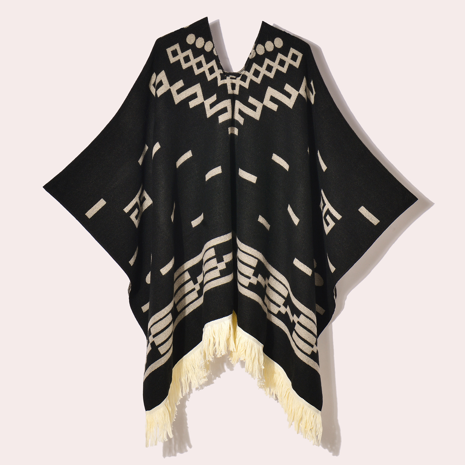 Western Denim Style Men's And Women's Shawl Tassel Pullover Keep Warm Outdoor Large Cloak