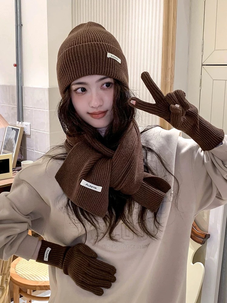 Winter Knitting Fleece Thickened Thermal Three-piece Suit Wool Scarf Hat Children