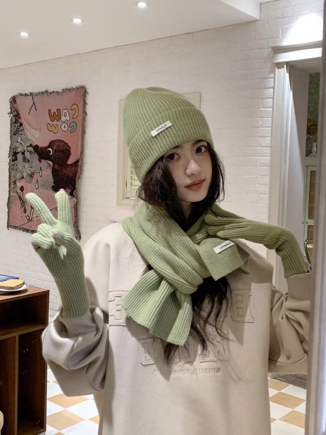 Winter Knitting Fleece Thickened Thermal Three-piece Suit Wool Scarf Hat Children -