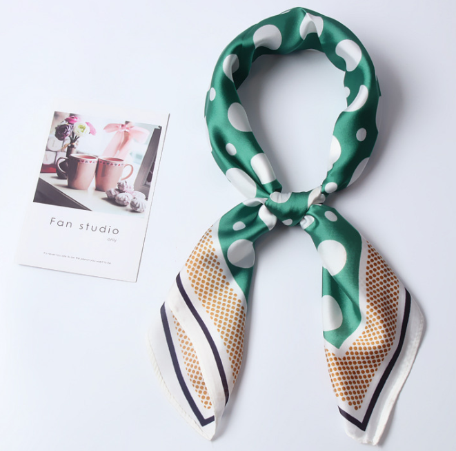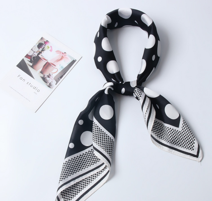 Women silk scarf square shawl hair neck dot print scarves