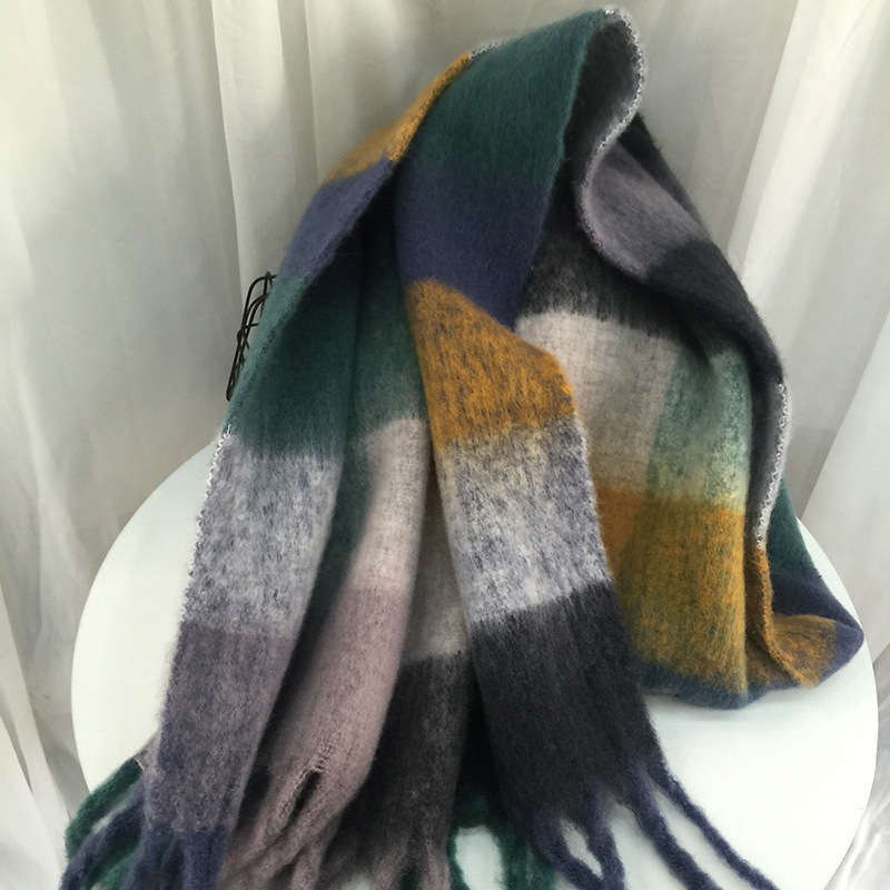 Women's Autumn Colorful Striped Warm Cashmere Plaid Scarf -