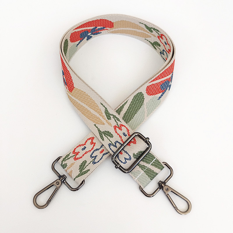 Women's Bag Shoulder Strap Accessory Strap Leaves Flowers Width Purse Chain Embroidered Canvas Ribbon
