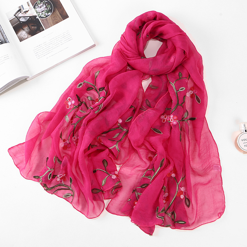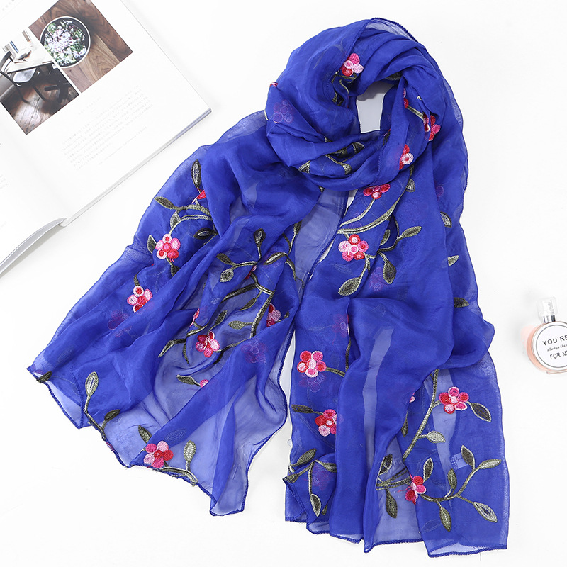 Women's Chiffon Flower Embroidered Silk Scarf Beach Shawl